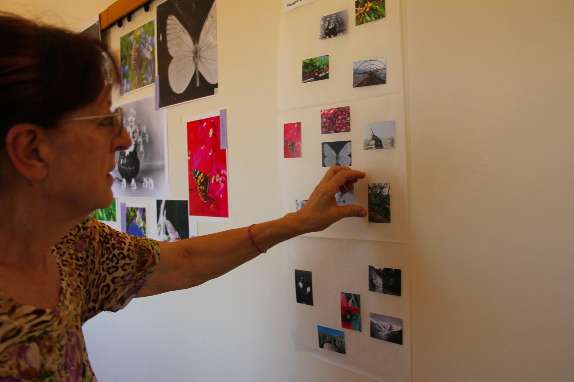 The double-blind curation resulted in the two exhibition paths, which enabled the exhibition visitors to to look upon themselves with new eyes. After visiting the exhibition, citizens and farmers were invited to the “Imaging acts of care” workshop, where they used the “entanglement tool, a wooden tiles-tool which made collaboration tangible by the use of elastic bands linking each other’s tiles. Participants worked in pairs and, prompted by the pictures from the exhibition, they had the choice between “maintaining”, “improving” or “repairing” the situation pictured in the photo through collaborative actions.