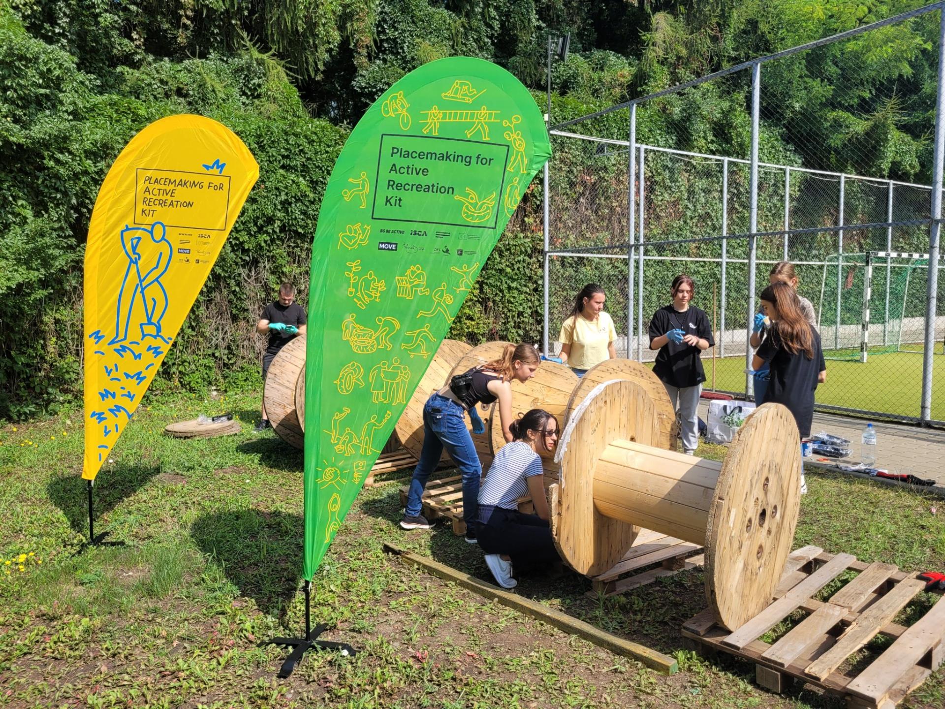 For example: In Romania, the placemaking for active recreation approach was applied in 3 locations in 3 different cities, Suceava, Gura Humorului, and Oltenita. The spaces were sanitized, cleared of vegetation, and then transformed into dynamic areas for students and teachers with fitness and active game equipment. The transformations were made with the help of paints, brushes, wooden pallets, or used tires and led to an increase in the participation of residents in the neighborhoods.