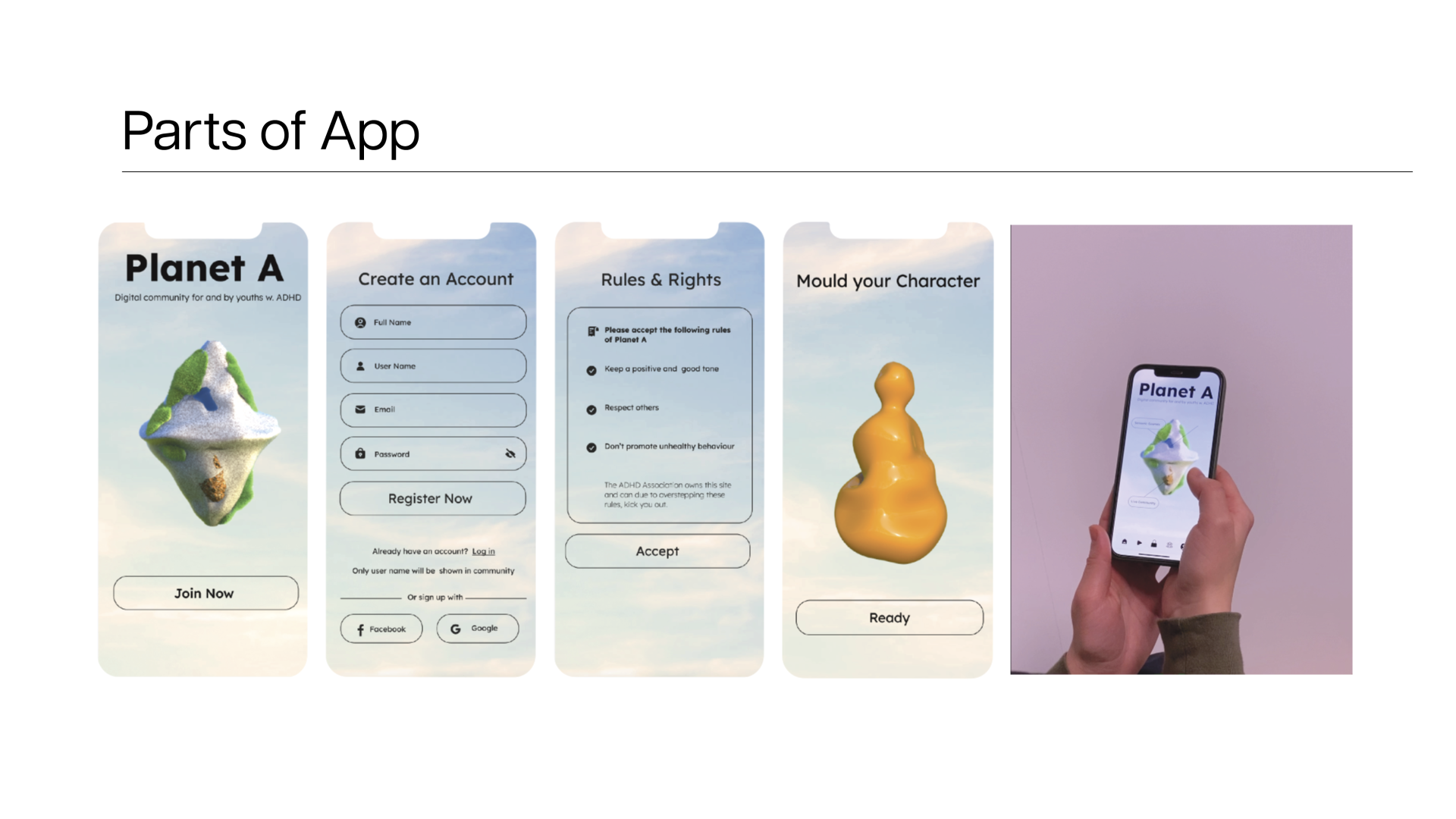 Planet A - Digital community for and by youth with ADHD. Planet A is an app that makes it possible to understand and master your ADHD through a community. This new network consists of emerging content that is generated by its users. The content exists in a digital uplifting and positive environment that motivates learning about ADHD. The solution is designed to be accessible no matter where or when the user is in the need of an uplift on the journey of ADHD.