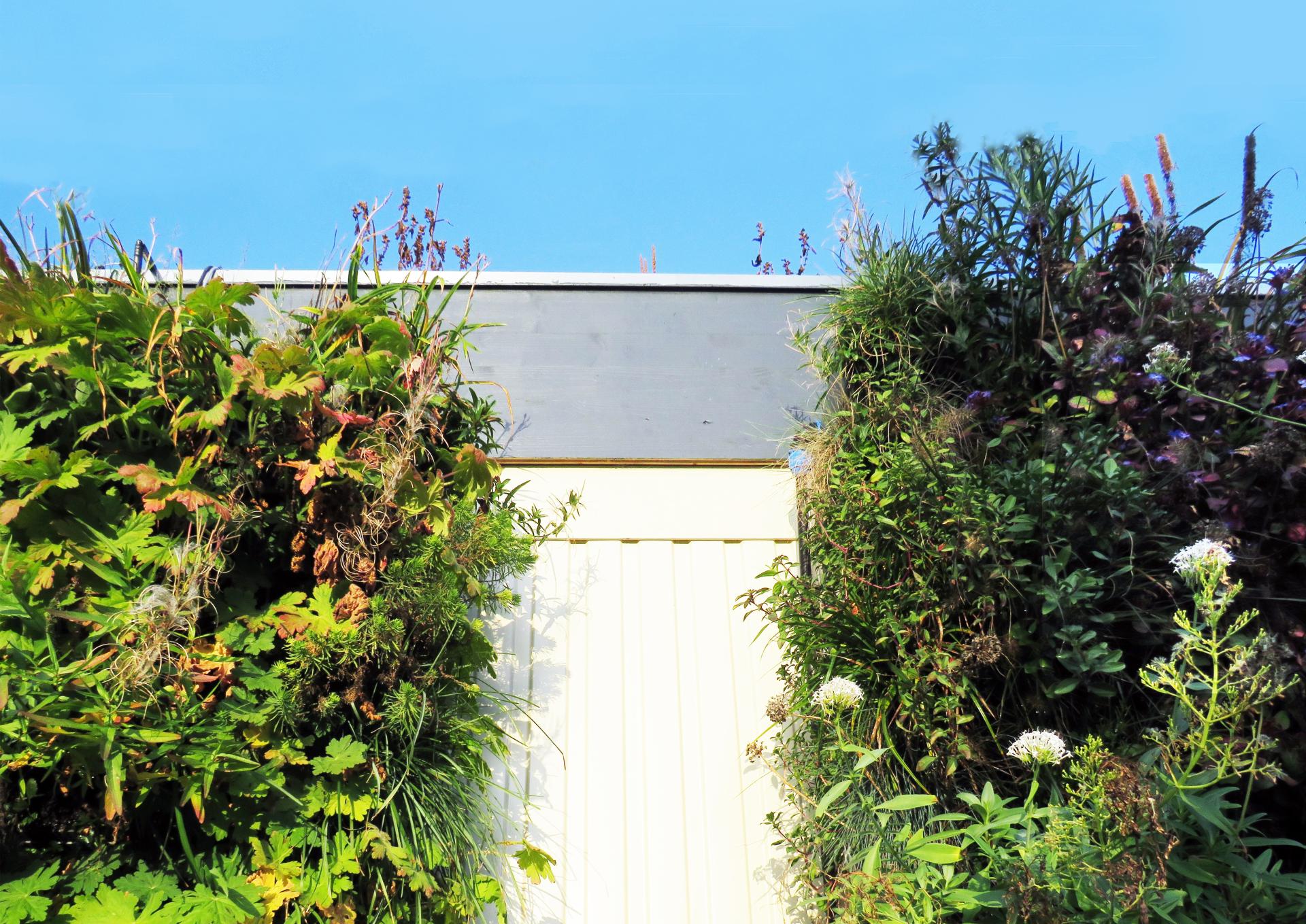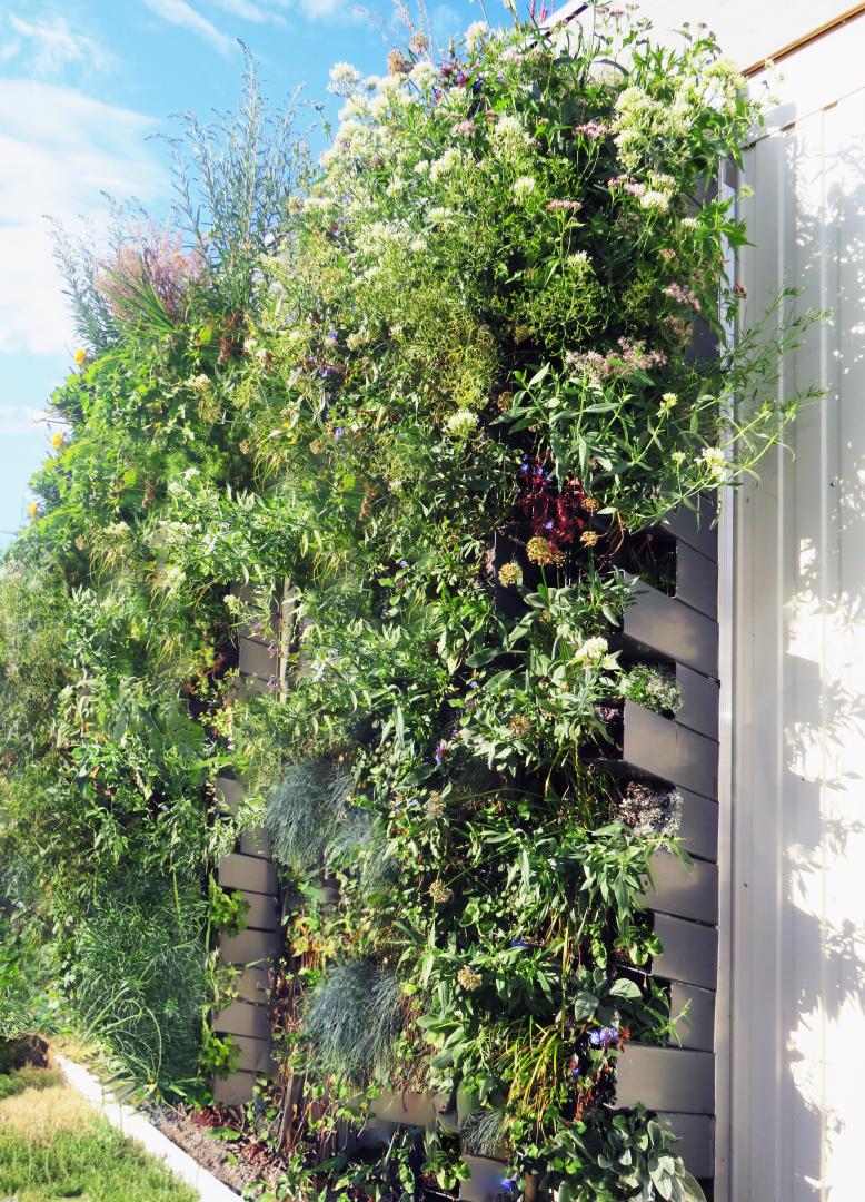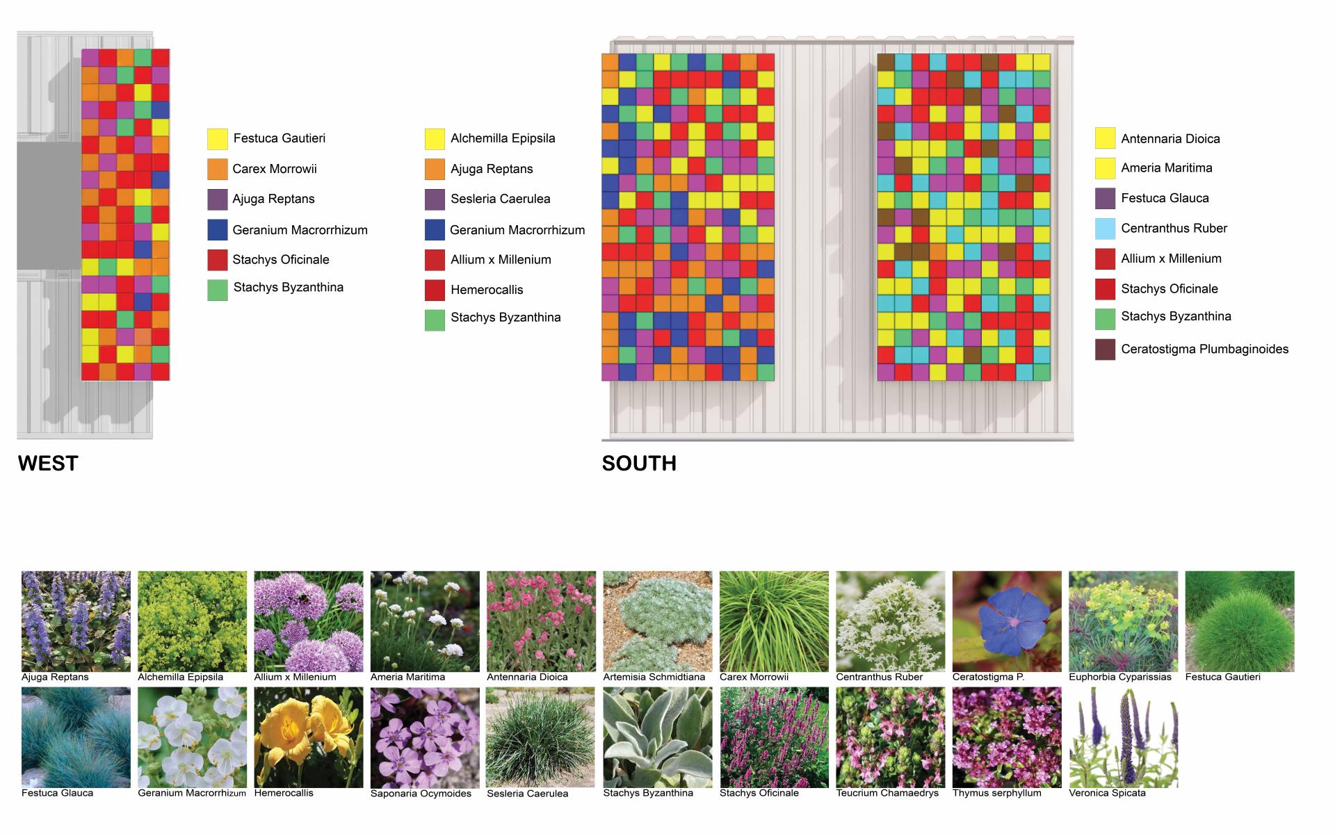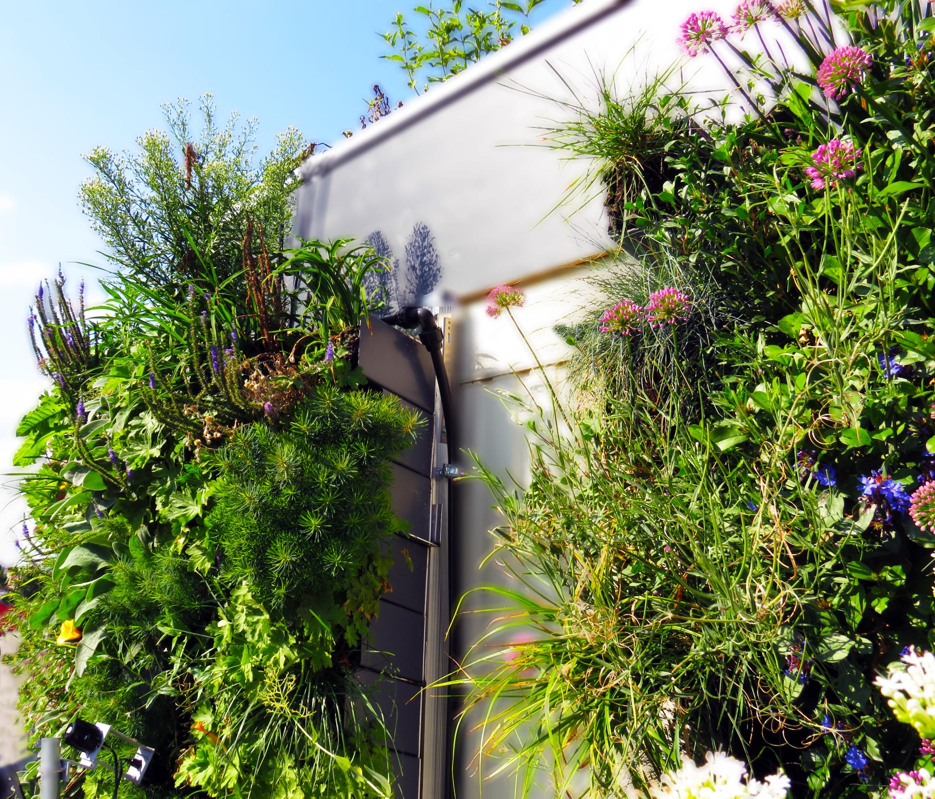 The Plant Pixel full-scale mock-up was constructed on the south and west walls of a container in Wolfschlugen, Germany. The full-scale mock-up included 500 square profile modules and 500 plants.