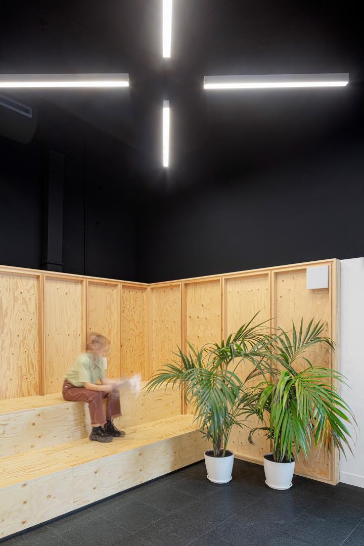 The premises of the Post-Compulsory Education Office are located within an office building-complex, ensuring that the space's proportions are more domestic and tranquil.