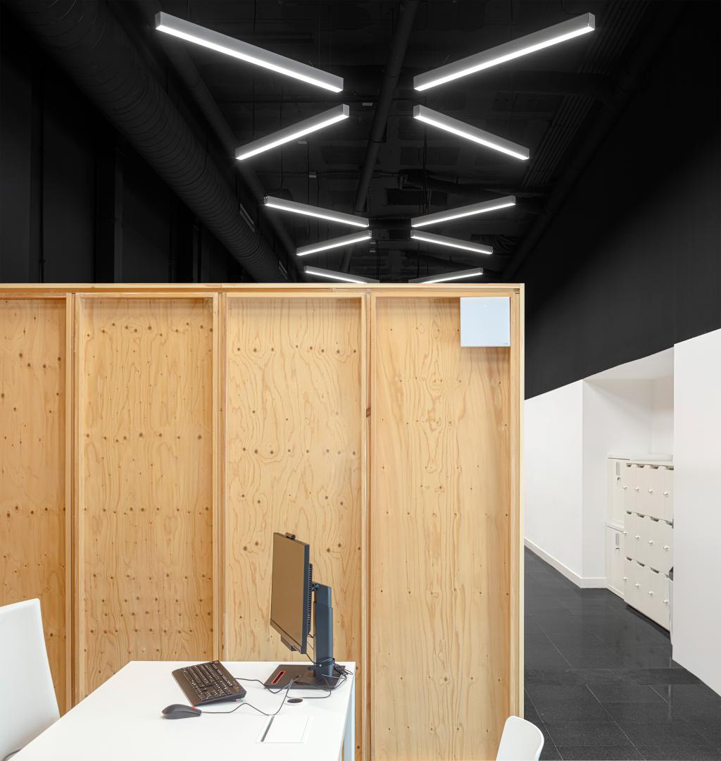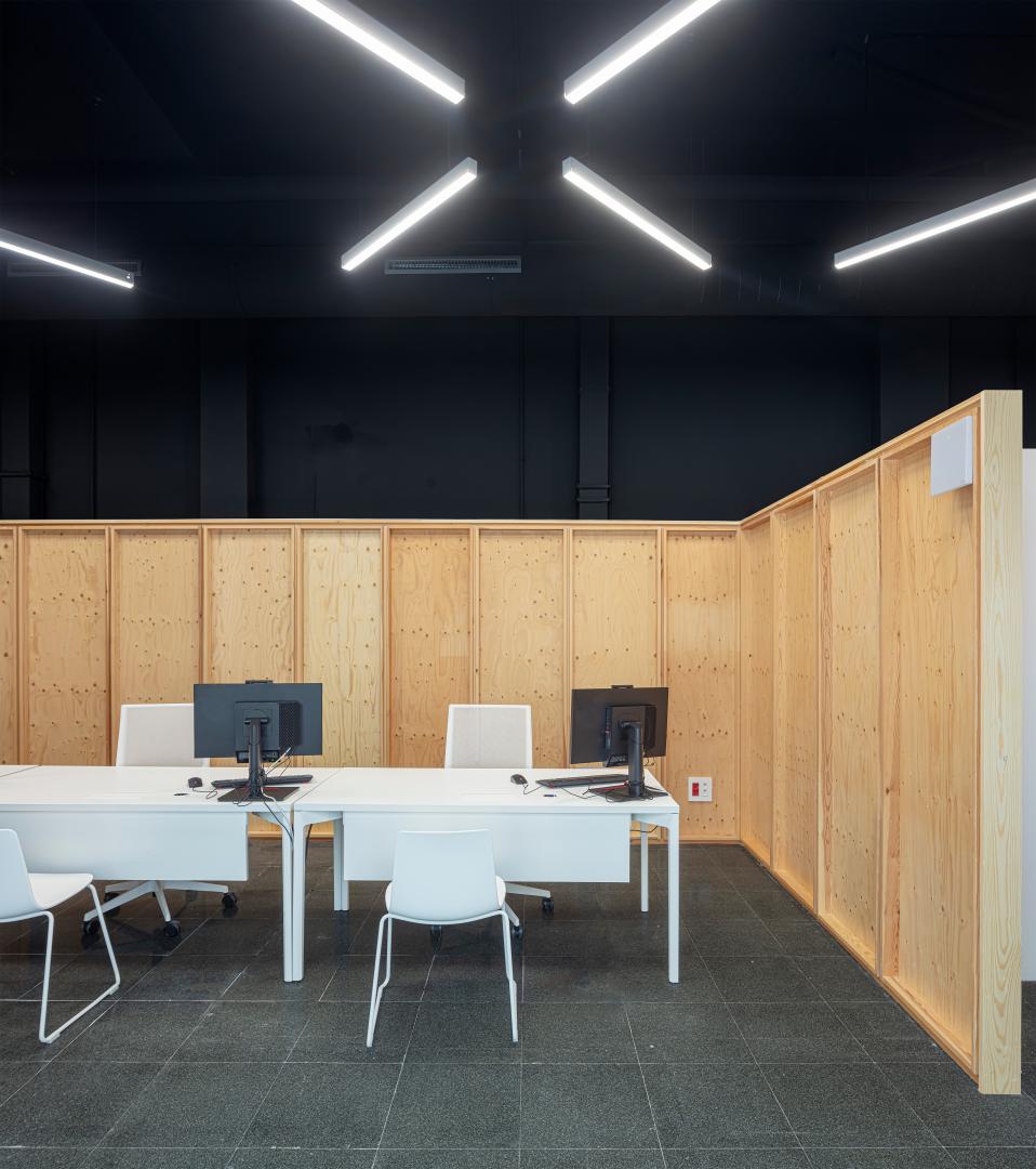 This space was created with reused materials, coming from a temporary installation at a School in Barcelona. The wood screens and light tubes are rearranged in the Post-Compulsory Education Office. Since the modules could be directly reused, construction waste has been reduced and contributes to a sustainable outcome. From start to finish, only three months were planned. This lead to co-managing the design and the construction simultaneously.