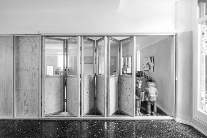 When we started the process, a previous work of our office was being dismantled at the same time: the temporary school in Can Rosés School, in Barcelona. We were able to manage the reuse of most of the materials from this no longer needed facility to generate a new space.