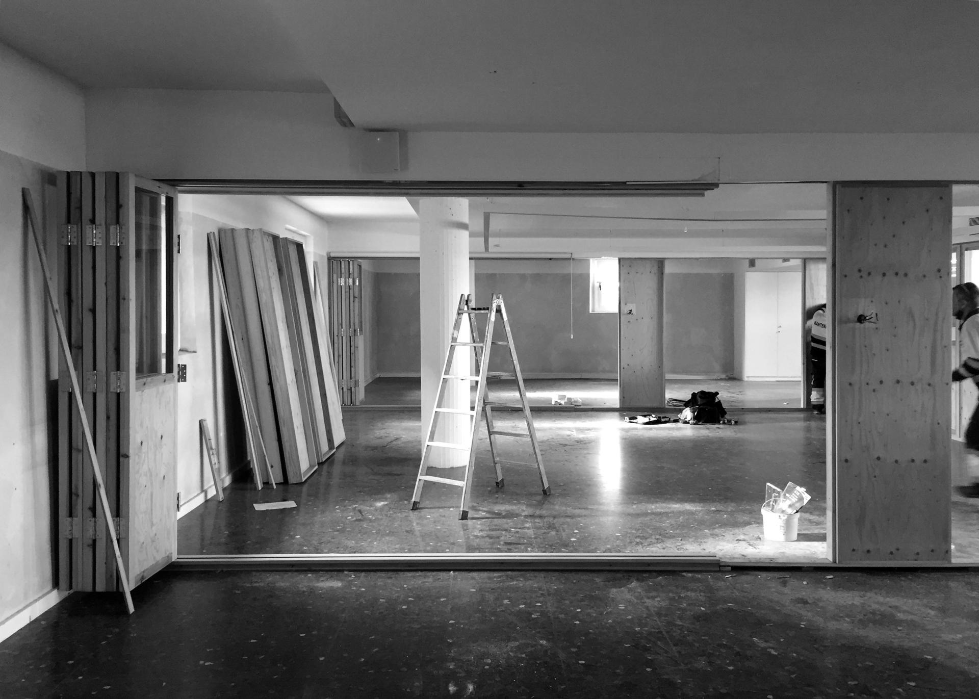 From the work of "Can Rosés" we took advantage of the wooden partitions and the modular lights. We extended their lifecycle into a further temporary stage. The fact of operating with modular and removable elements has allowed their reconfiguration and their use in a different arrangement.