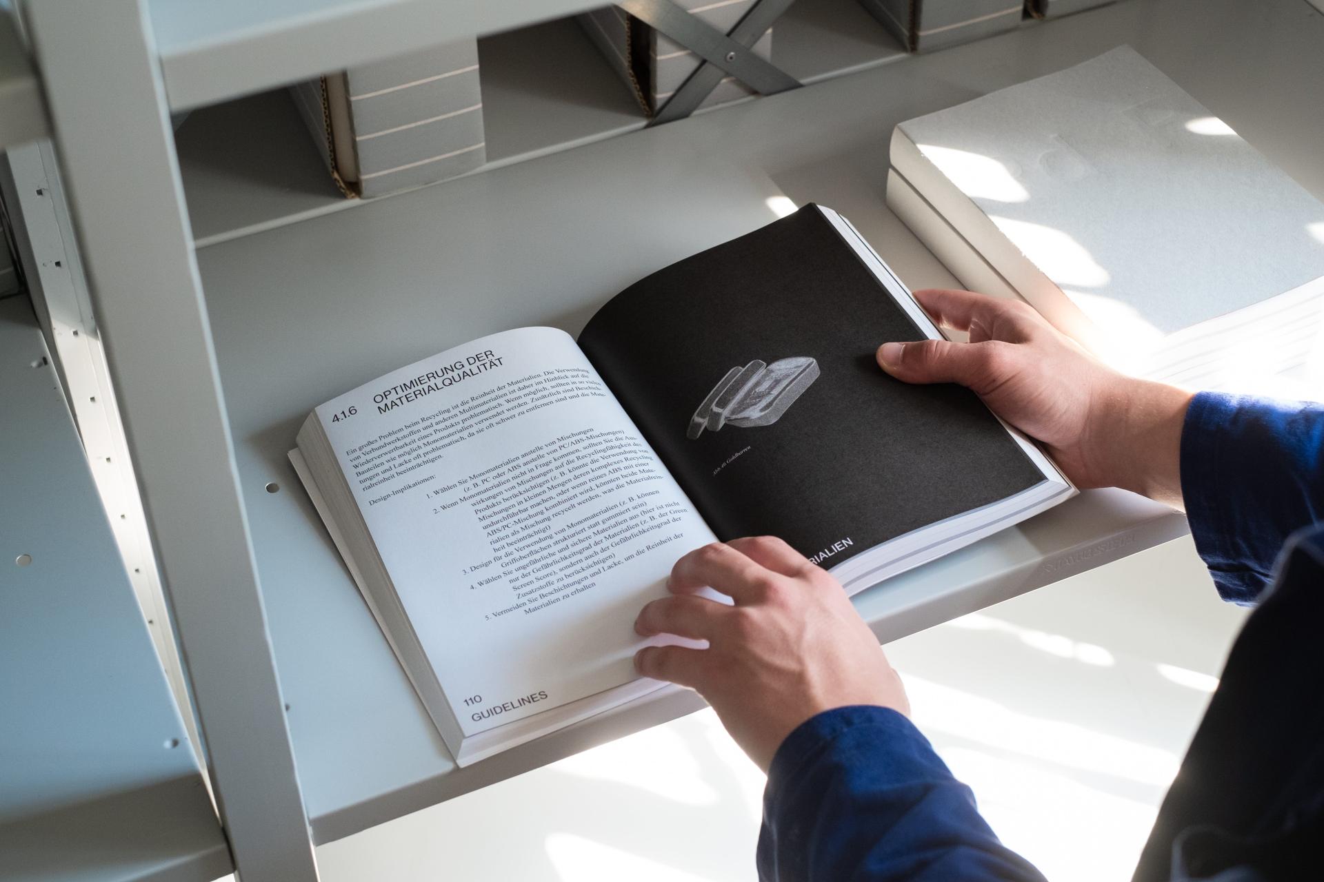 As the topic handled in this project is of high complexity the incorporation of the most relevant, affected disciplines was essential for the creation of a well-founded design guide. Examples are behavior models which were discussed and reviewed by a sociologist, product structures and material requirements discussed and reviewed with a product developer/ engineer, the overall framework of the project structures and developed with a communication expert, and all design-related content with experienced designers from different industries.