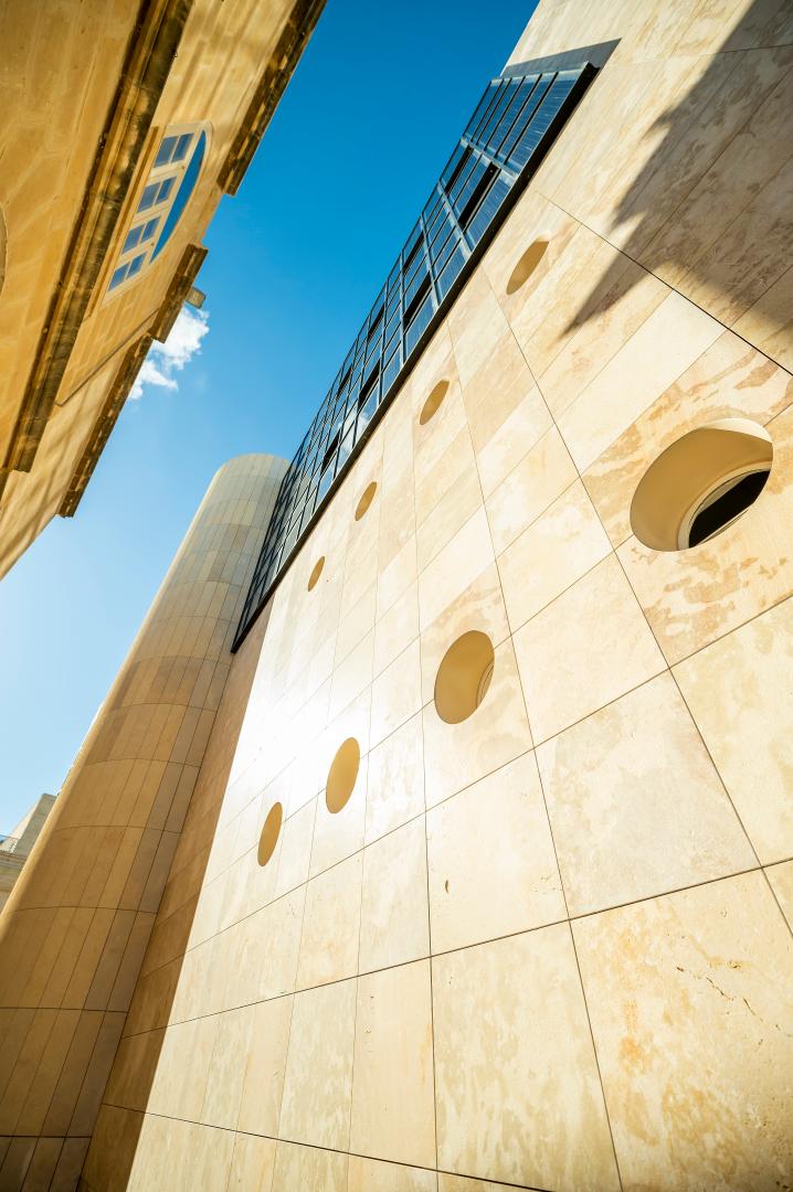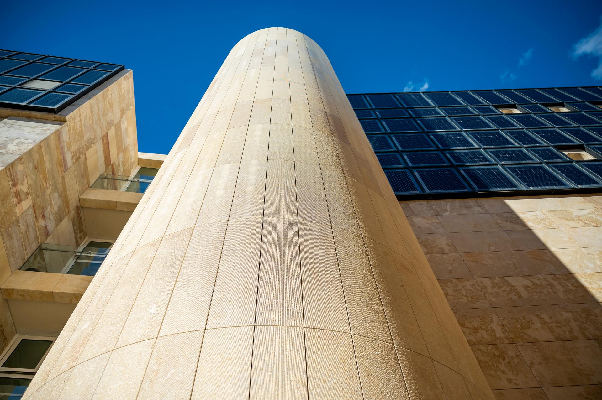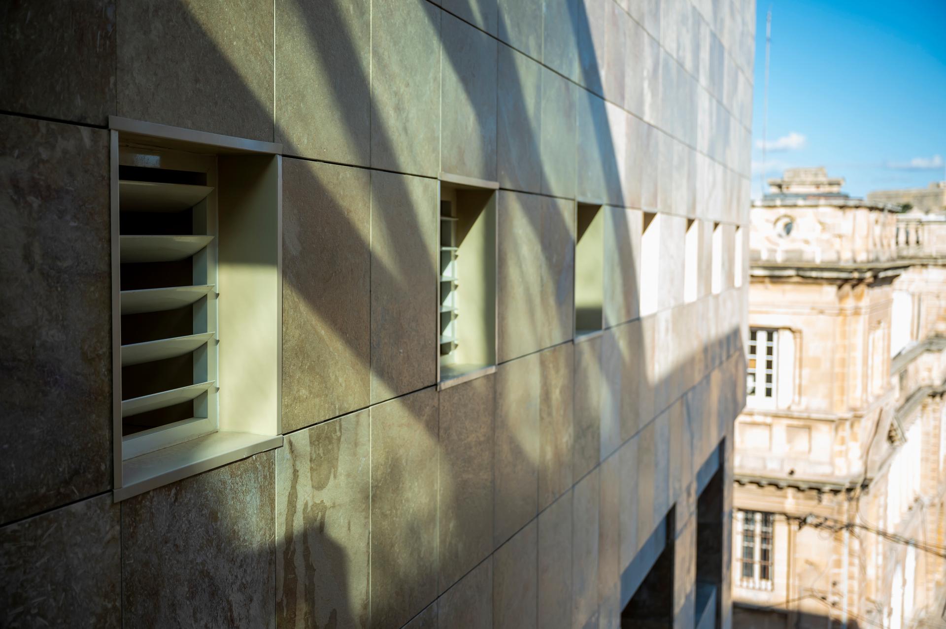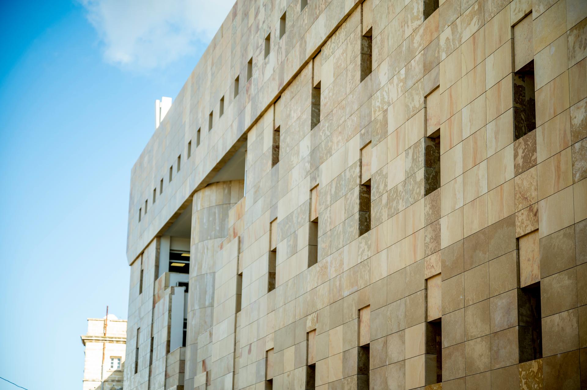 Being a small island with lack of natural resources, Malta has to import most of its materials used in the projects. But in this case, the chosen façade cladding material was the locally sourced hardstone, a natural untreated material, hence less carbon emissions associated with transport and processing.
