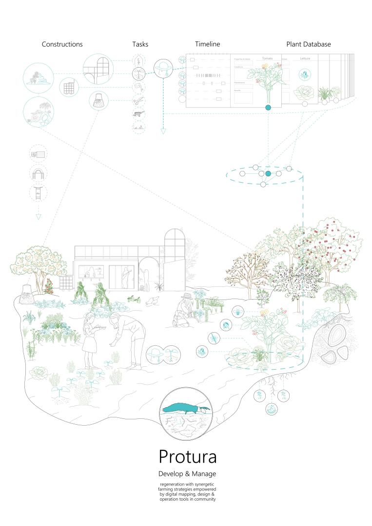 Protura is an open digital platform to develop and manage urban and rural community farming projects. As a user-based web-application it is used to create, collect and share regenerative strategies to develop polycultural ecosystems. Digitally interconnected tools and databases support the organization to manage project resources and tasks successfully over time.