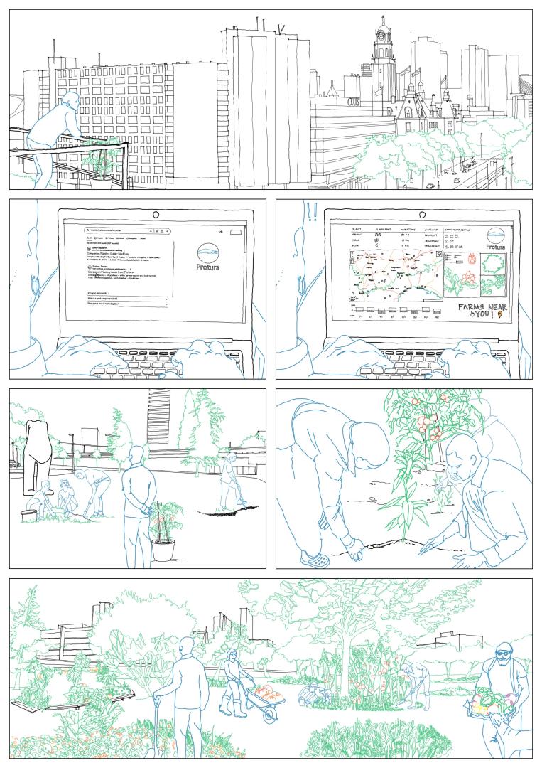 The concept of Protura was partly inspired by an existing network of gardens in the city where we live, with the wish for more food and health sovereignty. According to people actively involved in these edible gardens, their regular activities with plants provides them with a wide variety of emotional, mental and physical benefits.