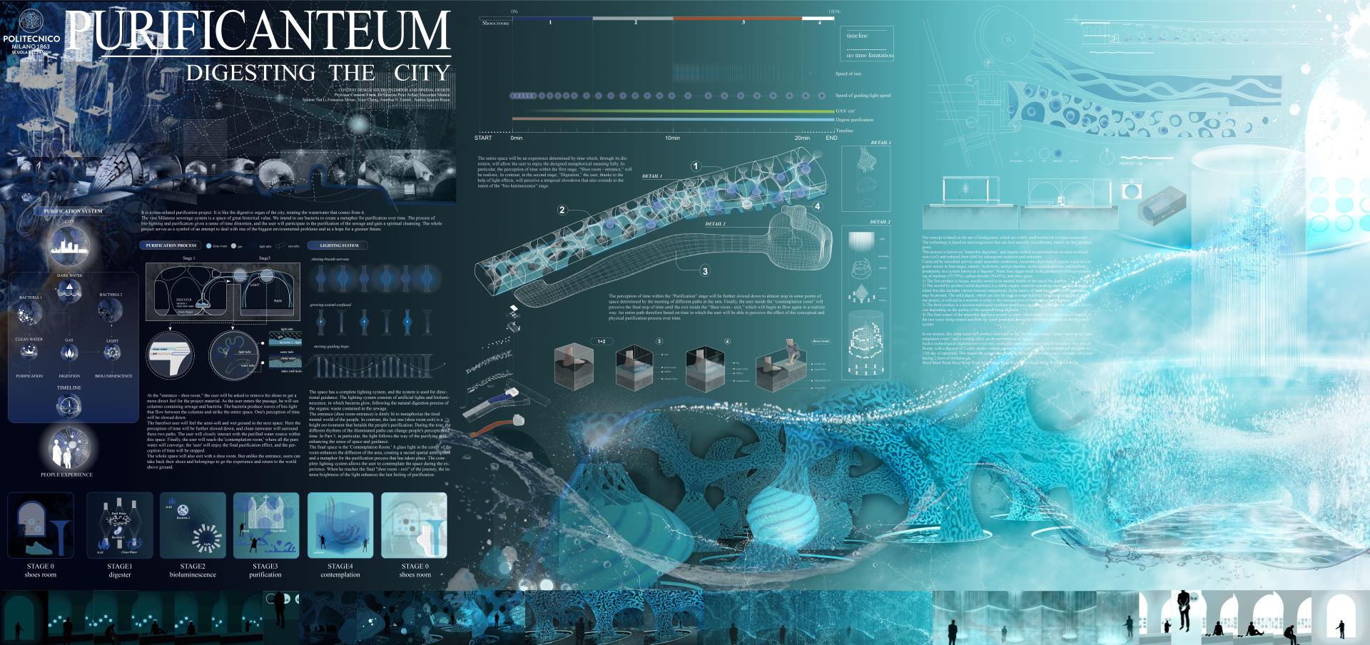 The purification system is based on technologies that have already been used as bio digestors are already a reality. By pushing this technology to its true potential, we conceptualized a space that could effect people's effort in preserving this primary resource and at the same time provide clean water to the city by cleaning what has been wasted and polluted.