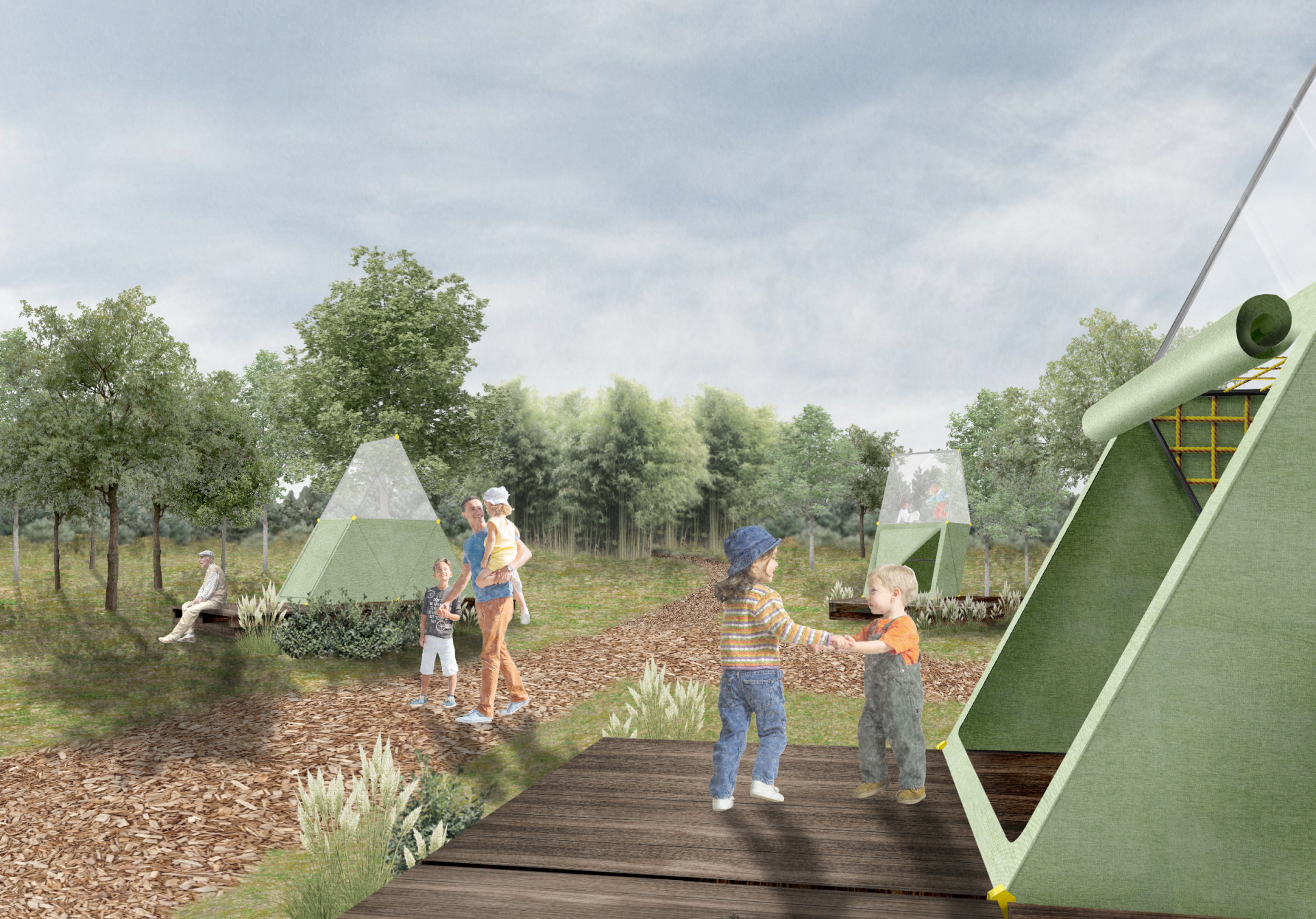 A civic space dedicated primarily to youth and families in the context of the Vignole. A modular and sustainable furniture system that offers accommodation, educational paths, games, and playful and adventurous activities, through which education in sustainability is provided, including through movement and contact with nature. The space is self-supporting through renewable energy resources and is sustained through payment for accommodation, access to activities, and the sale of local products. It provides jobs for local residents, with the goal also of redeveloping an area, today, with no identity. Through the project, moreover, the lack of green areas in Venice is made up for, thus becoming a meeting place for young Venetians. Finally, the system is designed in such a way as to make this service replicable in any natural area to be redeveloped.