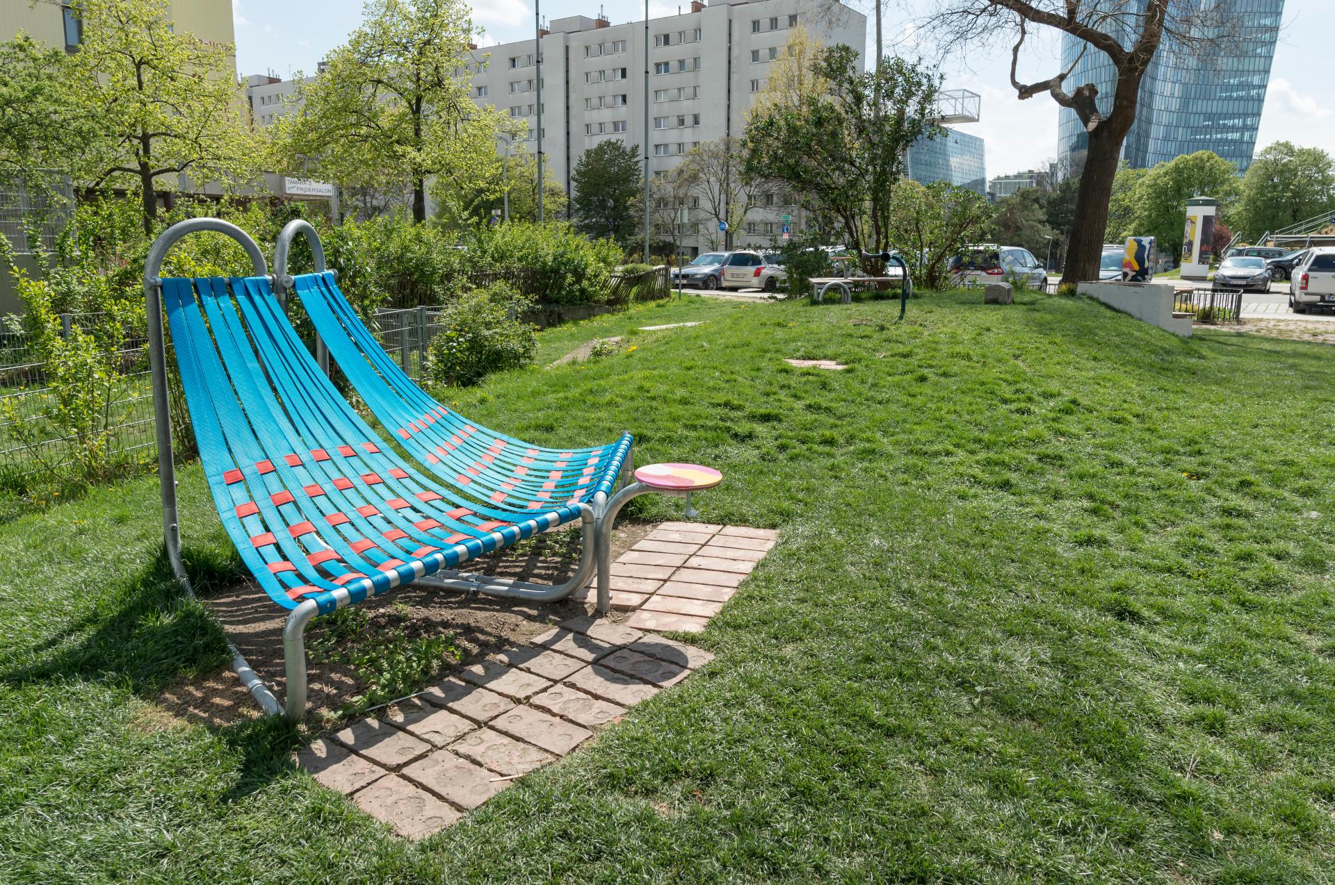 The new typologies designed in the pilot project go beyond common park furniture (an exchange shelf, a bike repair station, a noticeboard, youth benches, a Hollywood swing, hanging seats and a smartphone amplifier). By activating and integrating the community an intergenerational network was created that ensures a vibrant micro center.