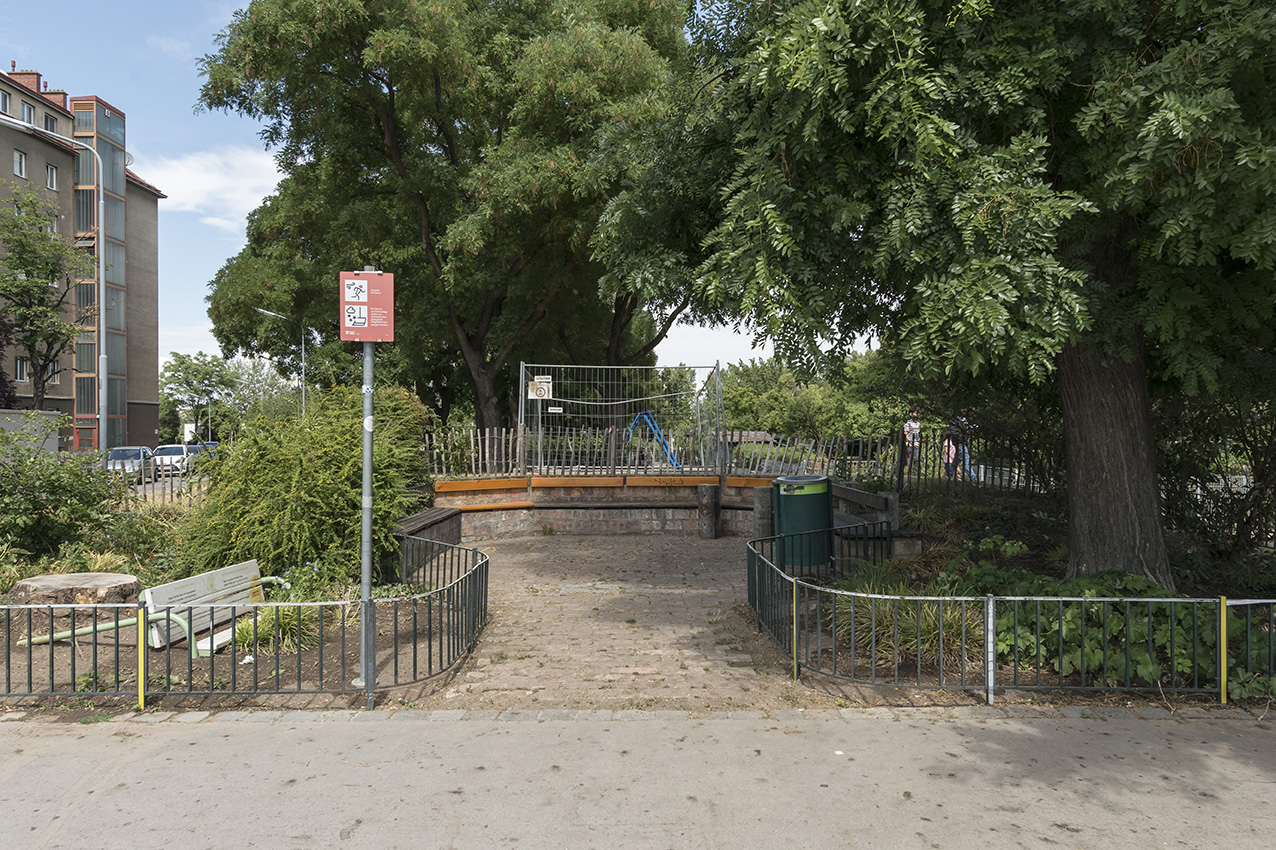 The esthetic approach is based on "waste parts" of Vienna's standard furniture and a playful expansion of its design vocabulary. Changing a single-use routine to a closed loop, the design shows the (aesthetic) potential of re-use, inspires new approaches to public space design and invites to experience the materials and their properties in raw form (metal, wood, stone, plastic, clay). Further, the in-situ materials (former sitting area, historic bricks, brick rubble, granite blocks, steel fences) were reconsidered and recombined with the utmost care for aesthetics, the material, the environment and the specific local demands.