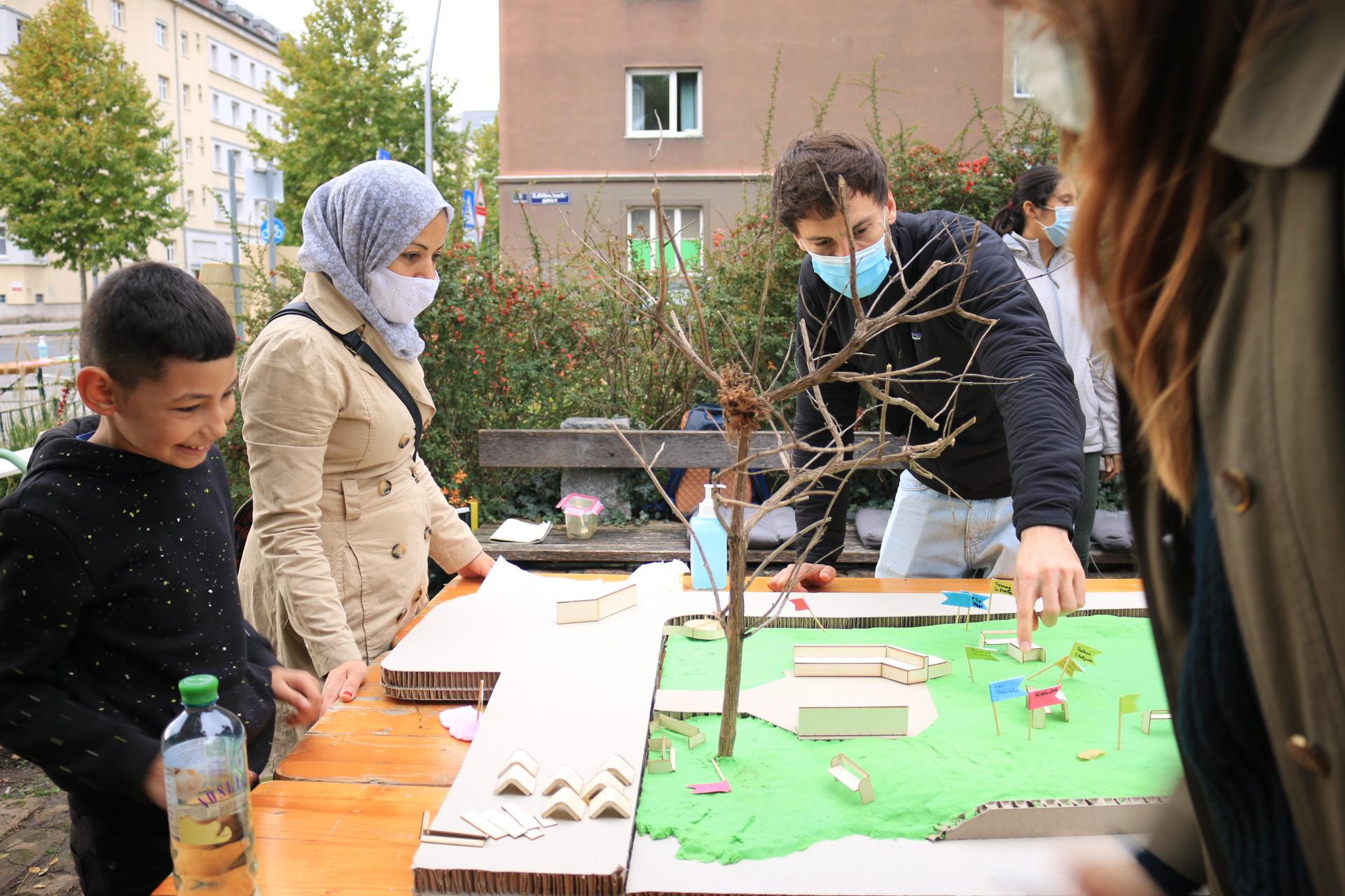 Social Design Studio Vienna allied with a broad audience by being present in the space over a long period of time, by activating existing networks and by entering into cooperations with local actors (elderly home, youth centre, community workers, district library). The project is based on a low-threshold, open-ended citizen participation process that was kept as accessible, transparent and unbiased as possible. Starting from a jointly developed utilisation concept for the space, ideas about implementations were collected, condensed, transformed into drafts and refined again with residents. The communication and workshops were multilingual to cover the different nationalities/communities of the neighbourhood. Residents were invited to participate in different formats in different places and were offered various ways of expression to contribute ideas, criticism, comments or requests at different times (of the week & the year). Whether publicly on site or in neighbouring facilities, the workshops were intergenerational and adapted to the prevalent age groups of the area resp. to the specific context they took place at.