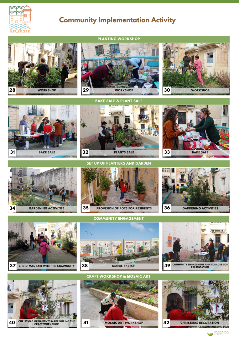 2. To promote equal opportunities in terms of access to nature, strengthening traditions and fairs, leading to a resilient community: The meaningful creation of public open spaces requires an inclusive process. Marginalised groups in Senglea, such as the elderly and children, as well as people from across the gender spectrum, have been brought together through the project's networks, the local council and local community groups. The ReCreate activities brought together all the members of the community: