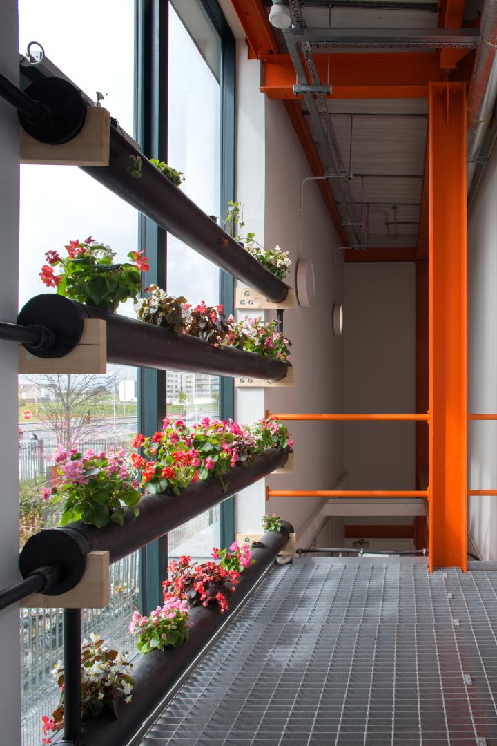 The Boiler House is the first public building in Ireland to use exposed hempcrete insulation, which is more thermally efficient than concrete and more permeable. Furthermore, all waste from toilets is treated onsite through a custom built biodigester and reed bed system, with a plant wall nourished from urine phosphorus donated to our urinals. A full list of interventions can be read on the Rediscovery Centre website.