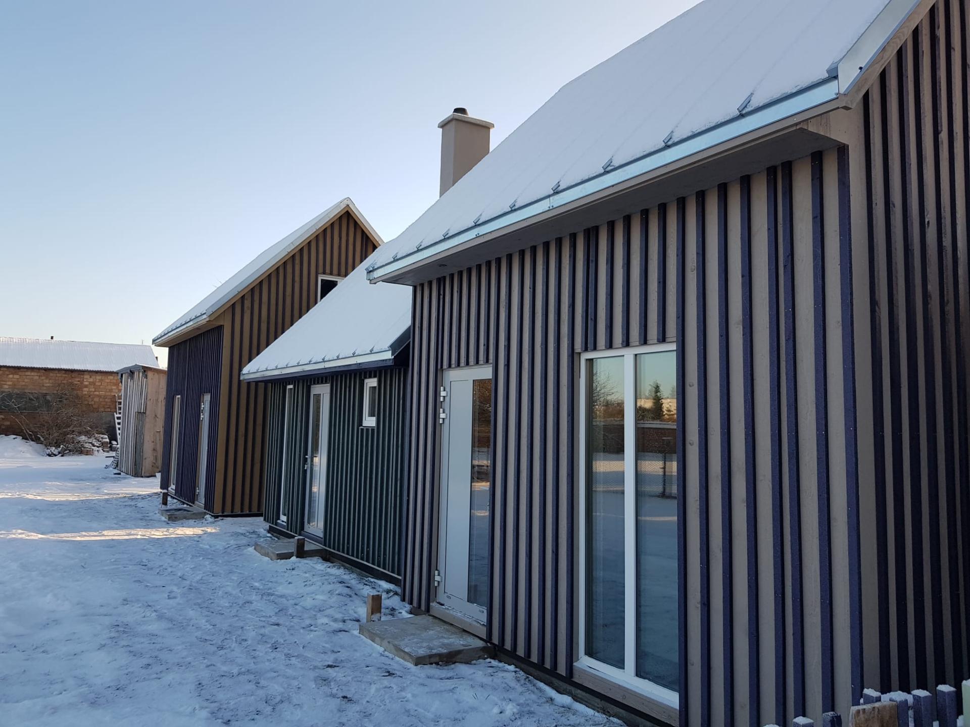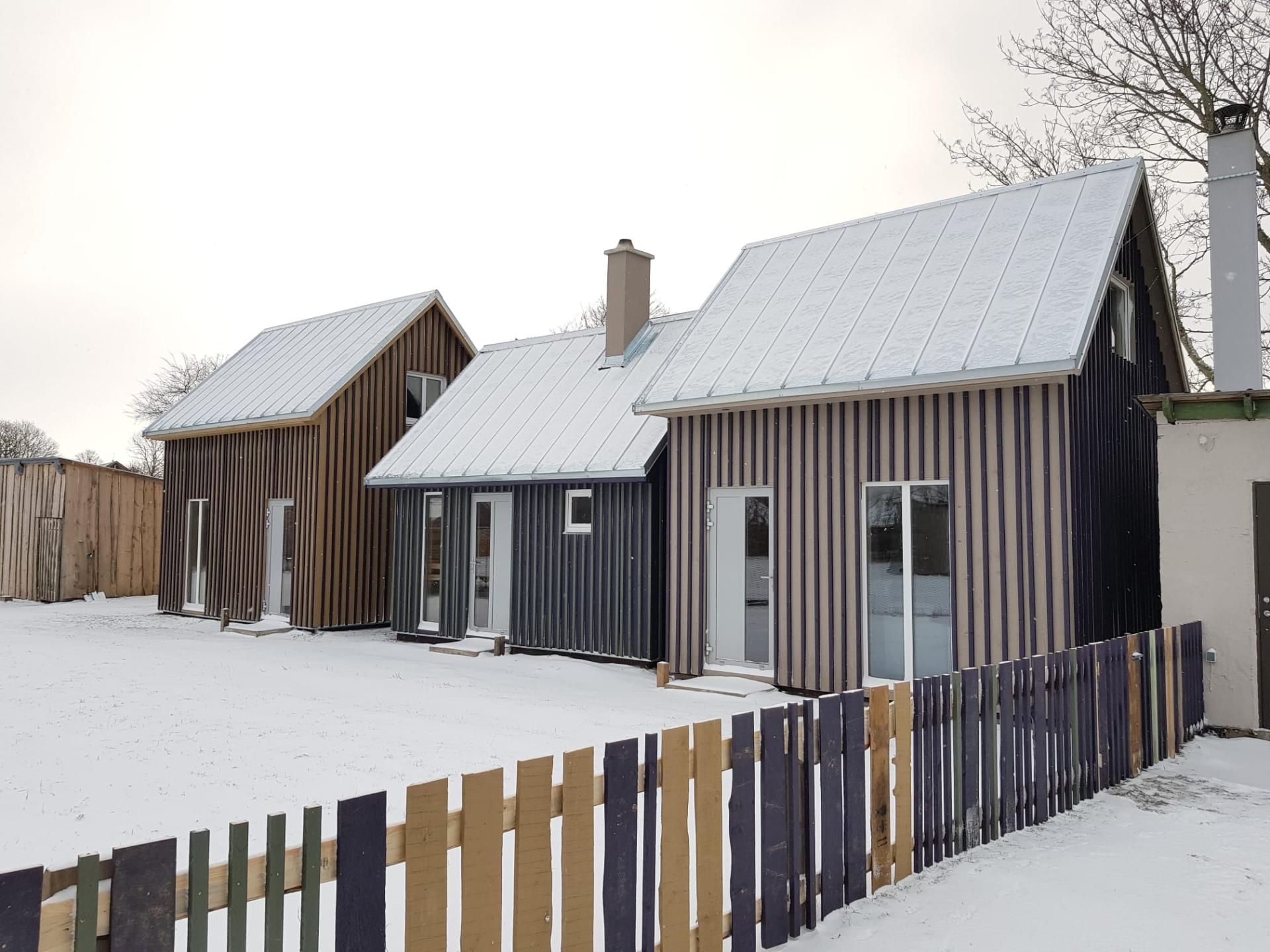 This project of three small buildings marks the completion of an ongoing project to improve a plot of land in the Latvian coastal town of Pāvilosta, 15 Lejas Street, which began in 2019 with plans to reconstruct an existing residential building. It is a great example of the reconstruction of previously abandoned buildings and the integration of new volumes. The project was carried out within the constraints of the existing buildings and emphasises the existing character with a stylish twist and a new function. The three small buildings – two short-term rentals and a sauna - and a residential building reconstructed in 2020 create a place with an inviting atmosphere.