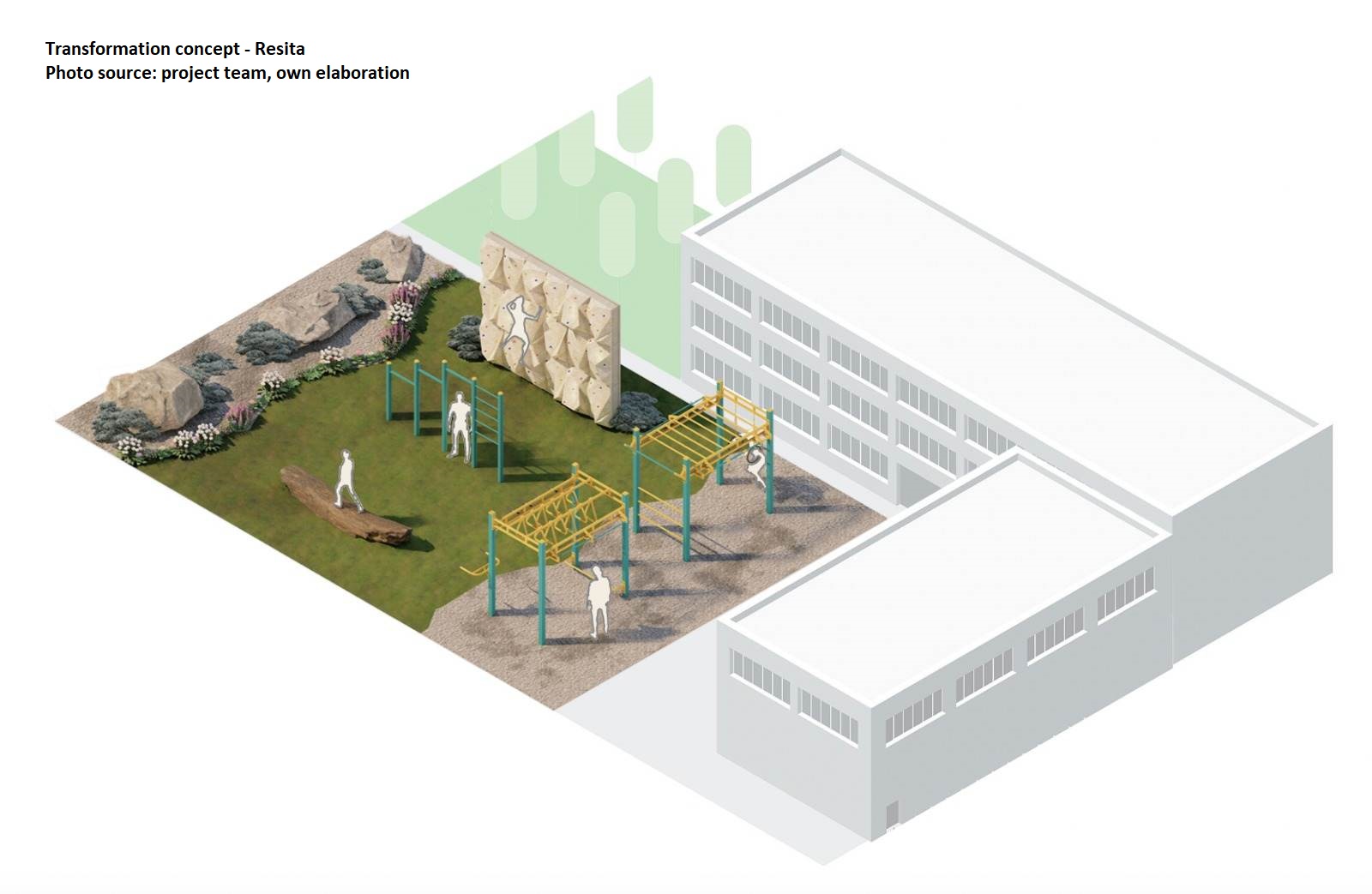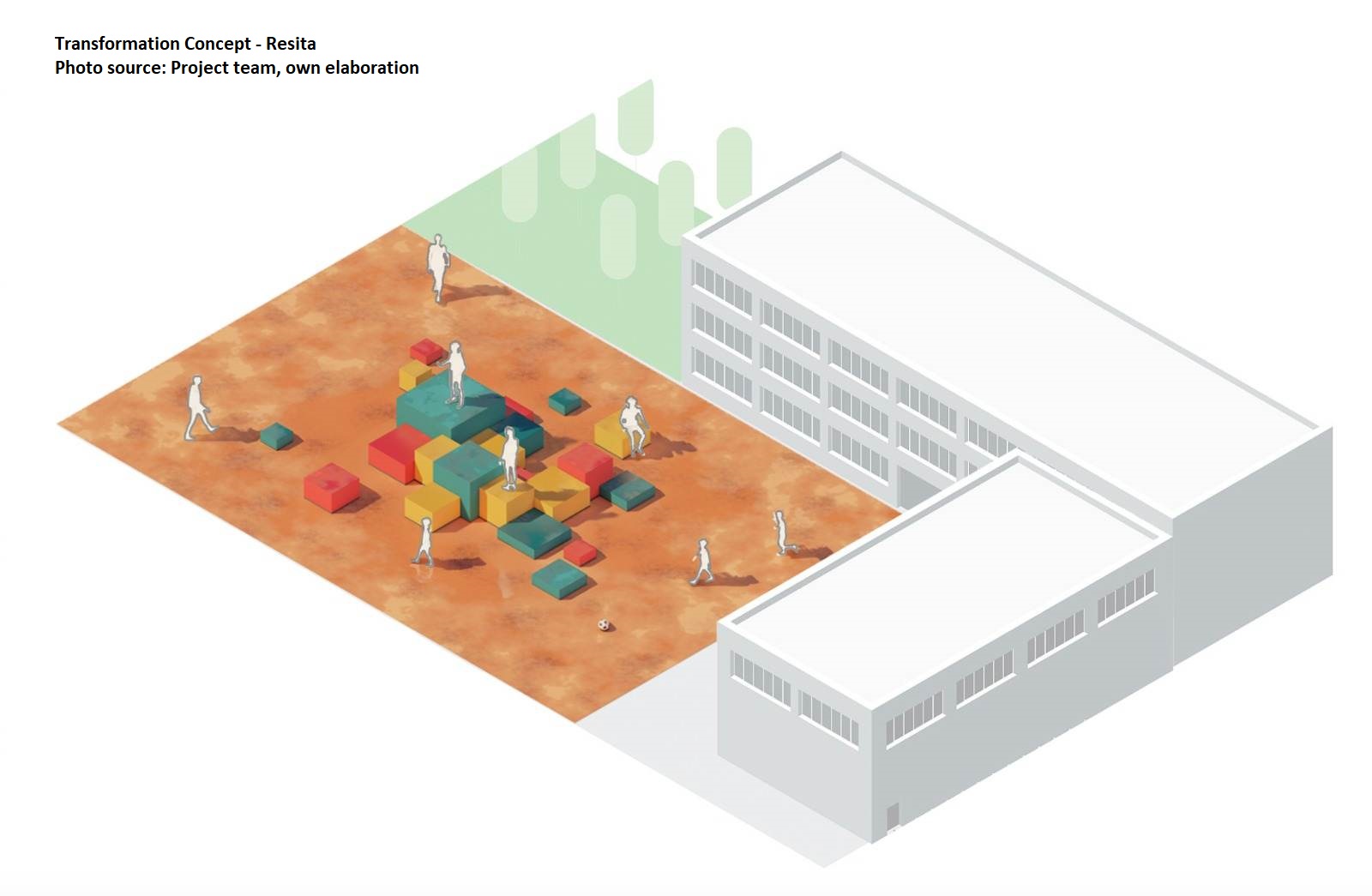 ReGeneration in Reșița is a project dedicated to accomplishing societal cohesion through participatory urbanism and workshops dedicated to climate mitigation best practices. The area proposed for intervention is known for its Roma community, in serious risk of poverty and who faces the issue of school abandonment. To change the destiny of the children residing there and making education more appealing, the local education unit's square will be transformed and regenerated for the whole community