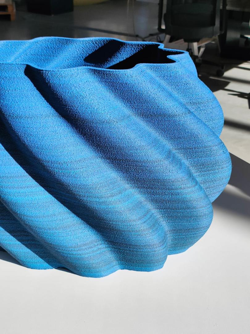 One of the main results was obtained with the collaboration of Egoitaliano and Regenesi. The project was presented at the Design Week fair in Italy 2023 with the aim to valorise and repurpose the textile industry waste. Together with Egoitaliano, we created an object that represents the circular economy principles and the waste recovery.