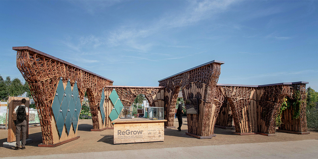 The project ReGrow Willow serves as a tangible design and technology demonstrator for waste free circular and digitally enabled construction methods. During its research development fundamental aspects of fabrication automation for inhomogeneous natural materials have been addressed and documented in scientific publications and conference presentations. The exhibition at the Buga 23 in Mannheim opened the scientific expert discourse towards a wider public including decision makers and political leadership.