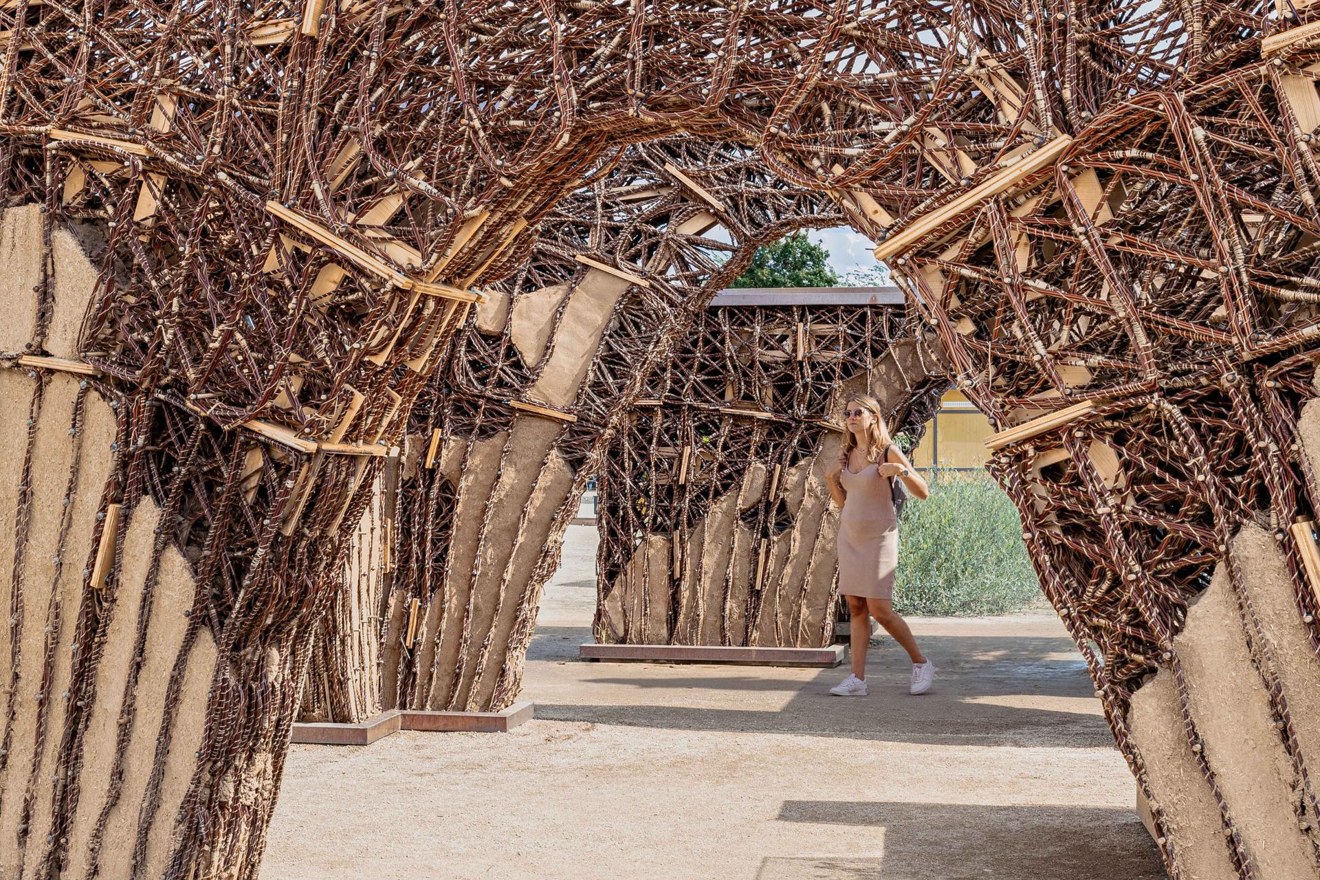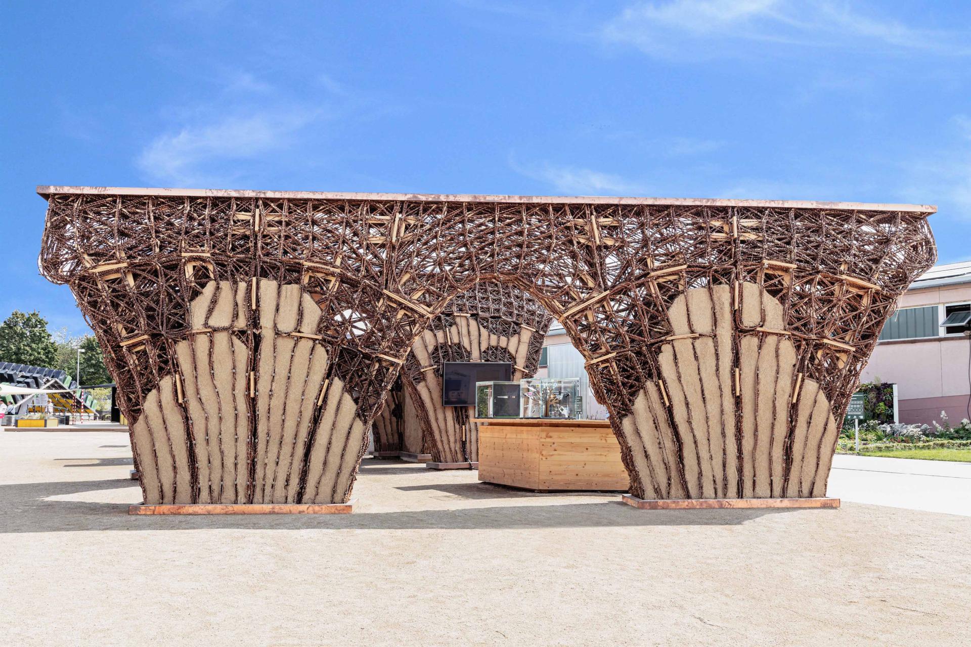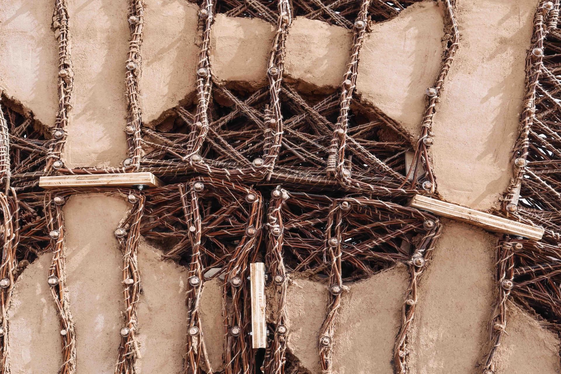 Structure, form, design, fabrication, circularity and function each become expressive elements coexisting and participating together, while maintaining their unique characteristics. The design language is conveyed through the interplay of open and filled meshes, which highlights the combination of the delicate and intricate filigree of willow with the robustness embodied by the earth and willow components.