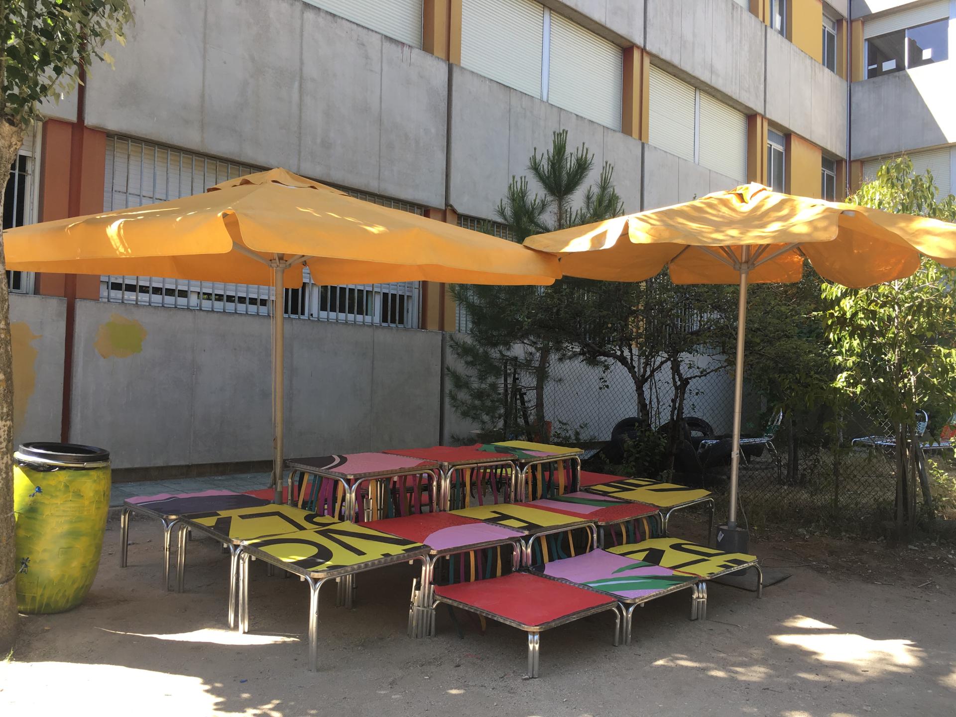 One of the objectives of the project was to use the waste materials for redesinging school courtyards, as they are one of the first public spaces where kids interact but at the moment they are not guaranteen neither inclusion nor gender equality. They are designed as a football pitch which excludes a lor of kids, making courtyards and public spaces more diverse, more dinamics and more versatile and flexible is crucial for inclusion, and that is one of our aims.