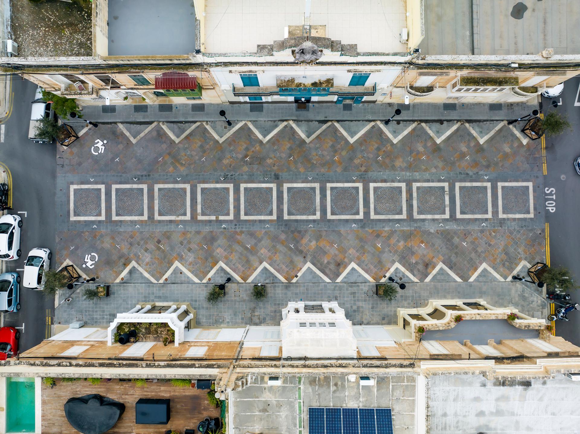 Annunciation Square, a focal point for the Stella Maris community in Sliema, has been transformed from a busy street flanked by two rows of perpendicular parking lots into a paved square with orderly parking and reduced traffic. Public squares in the cities and villages have long played an important role in the life of our nation, and this square is no exception. A public square such as Annunciation Square has a symbolic dimension for the community members of the Stella Maris area, as it serves as a stage for religious, cultural and social activities. In addition to the paving work, four large planters with olive trees were placed at the four corners of the square and eight new energy-saving street lamps were installed.