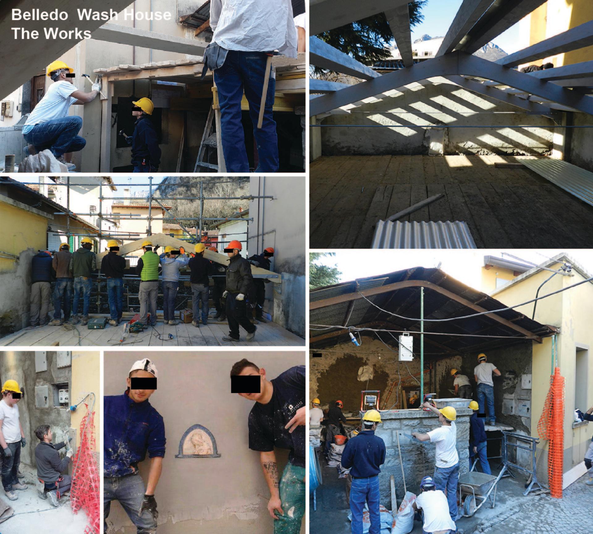 Embracing a participative and intergenerational approach, the project gathered different age groups to collaborate, harmonizing diverse perspectives. From high school to pensioners, this collaborative effort aimed to create a space that belongs to and is wanted by all, instilling a sense of responsibility for the environment, and ensuring sustainable usage for future generations. Choosing renovation over reconstruction preserved the buildings' structural integrity, reducing costs and construction time by maximizing the reuse of existing materials. Volume alterations were minimal, this approach ensured economic sustainability for the local municipality and sponsors. Our commitment to sustainability extended to the integration of locally sourced 'natural' elements, such as pure lime and plaster from food supply waste, and innovative materials like sand derived from eggshells and rice husk ash. When the roof structure substitution was necessary in the wash house of Belledo, the choice was wood beams, aligning the building with sustainability principles and local context. In fact, the province of Lecco is well known for the abundance of sawmills and wood production. The space evolved into a living testament to the village's history, offering a free, approachable, and inclusive environment for all, ensuring economic and social inclusivity.
