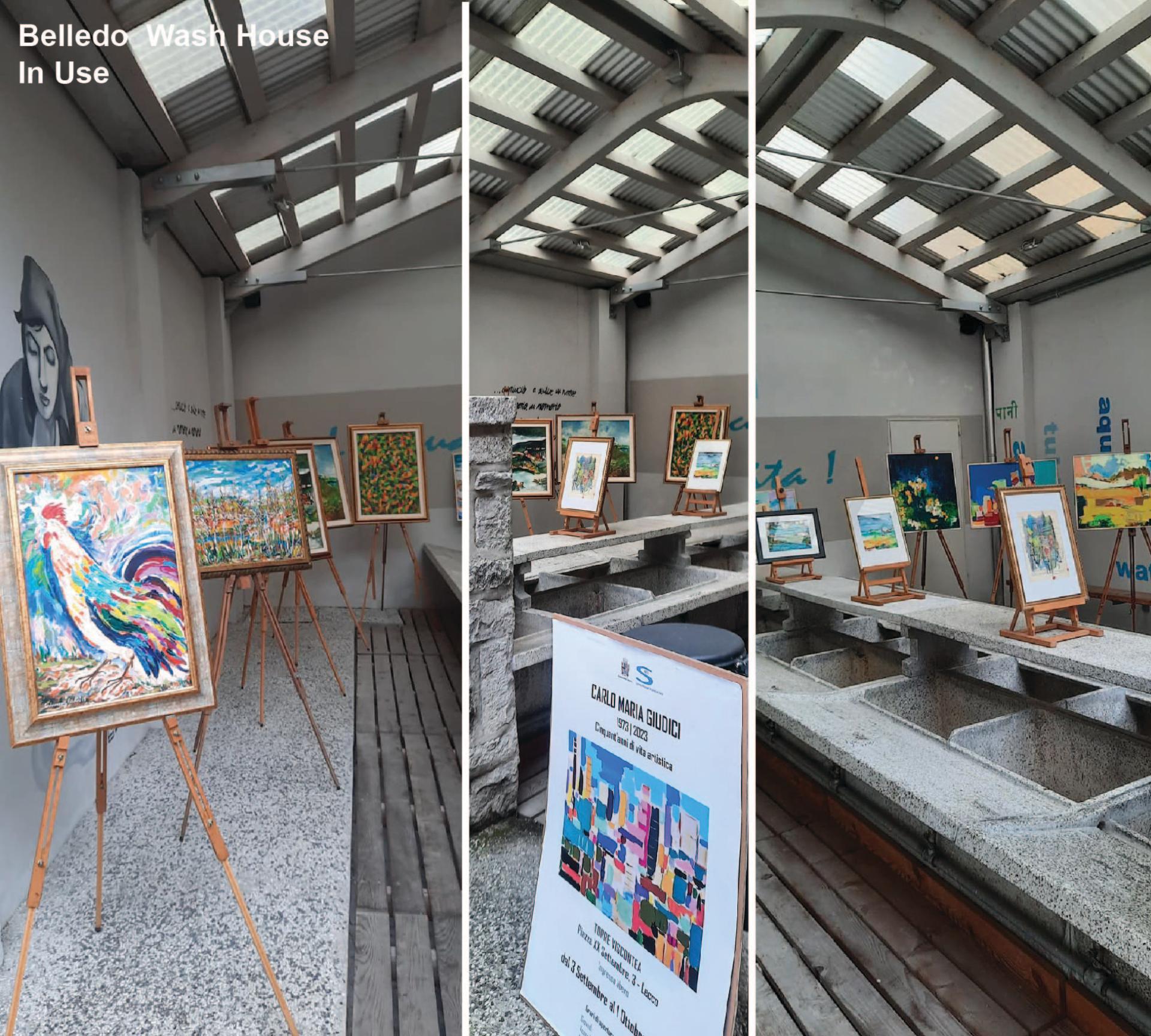 When the first application of the project in Falghera was completed, some neighbourhood organized to create a local “Committee” formed by people of the area, to take care of the place and propose events. Lately (October 2023) a little art exhibition with paintings from a local artist was organized in the wash house of Belledo.
