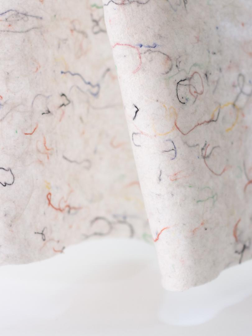 ReWoven allows recycled natural fibers to be used in the visible area with timeless aesthetics.The design plays a subordinate role in the currently common textile recycling products. ReWoven makes specific use of the material- and process-related aesthetics and enables an emotional connection to the product with high demands on design, quality and function. The creative use of recycled materials emphasizes the value of the material and highlights the special product quality. Basically, the use of existing materials means that a new form of design solution must be found. Above all, this significantly influences the design possibilities with color: if the waste consists only of white materials, the surface structure and consequently the haptics can be influenced exclusively by the type of waste and the processing method. The textile properties look, feel, touch are explicitly communicated with ReWoven - the origin of the material is visible. In this way, appreciation towards materiality and resources gains relevance. With our concept, the aesthetics of existing textile waste were explored to show their special value.