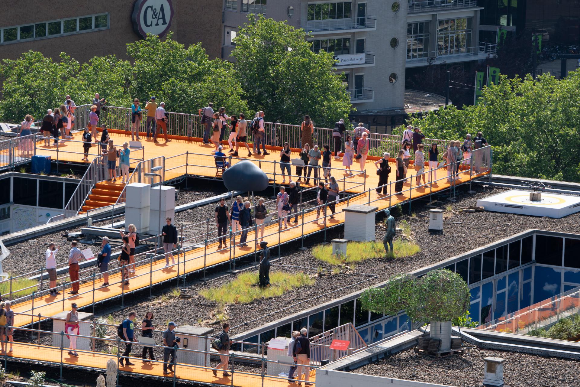 Rotterdam Rooftop Walk provided a month of spectacular sights in Rotterdam: from 26 May to 26 June 2022, an audience of over 200.000 people experienced how rooftops can contribute to a better future for densifying cities. The project was initiated, designed and executed by the organisation Rotterdamse Dakendagen, an NGO that (among other things) organises and curates events on rooftops as a way of promoting utilising rooftop space towards a more sustainable future in urban environments.