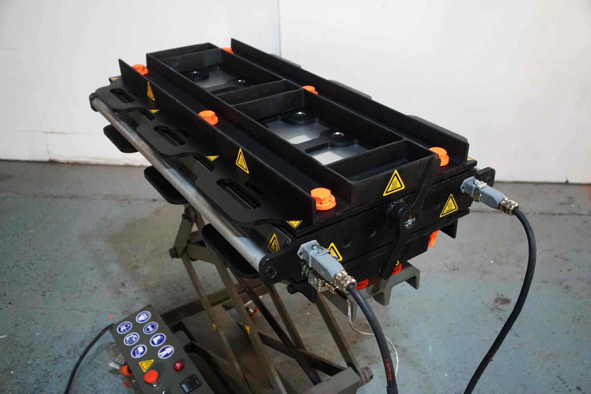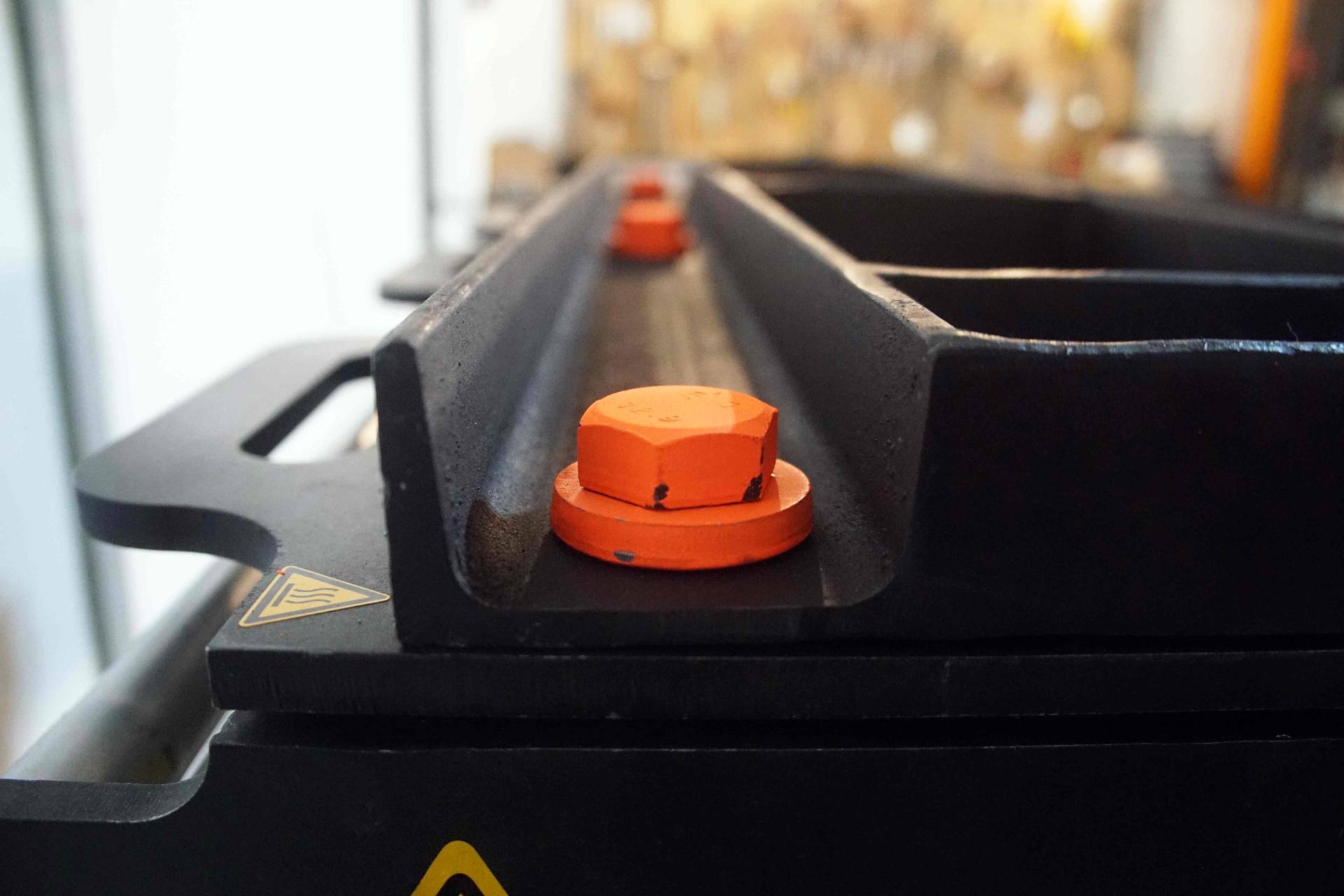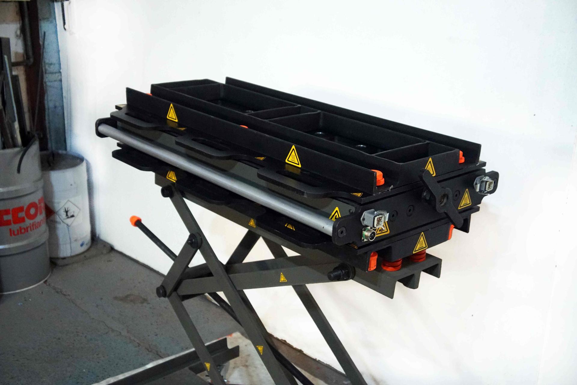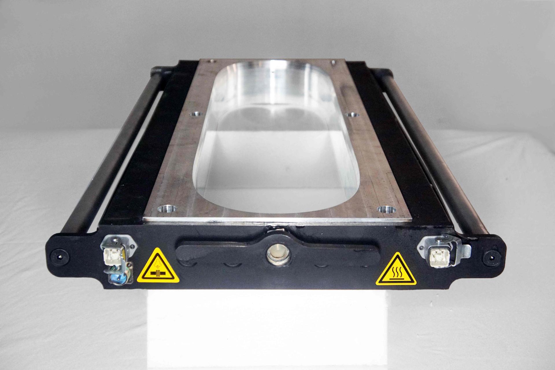 The mould has been designed to be accessible, with an adjustable height table, ergonomic quick-release handle, suspension, and backlit control panel for easy operation. It includes an emergency alarm and warning stickering to ensure safe operation. The mould has been designed to be long-lasting, with anticipated minimum cycle of 10,000 decks before the end of its life.
