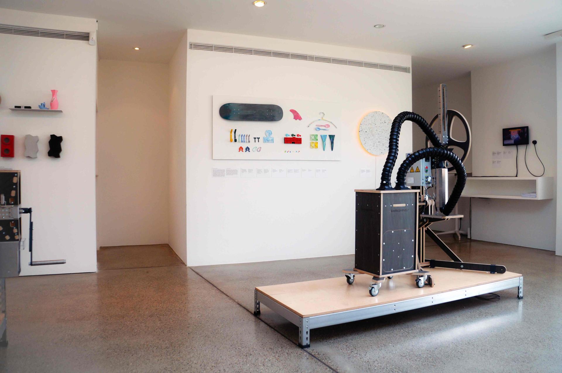 The actual production of decks is achieved by researching plastic recycling, which we publish online, open source, for free. It always has been and it always will be, so that anyone, anywhere in the world can pick it up, develop it, rework it, and implement it, on the condition that they share their results back. The goal of the project is not to monopolise production but act more as a facilitator to enable and empower others, by making it as easy as possible for people to start making desirable products from recycling plastic.