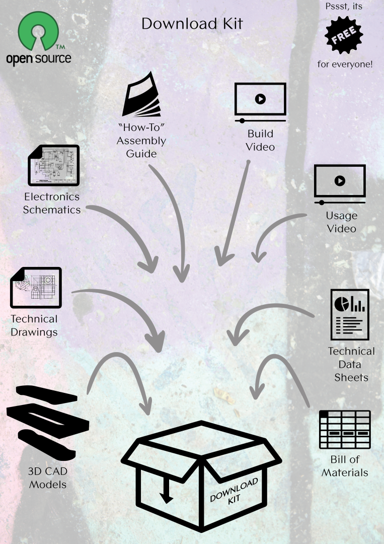 Our research is published in the format of Download Kits, containing all the information people need to set up their own skateboard deck production.