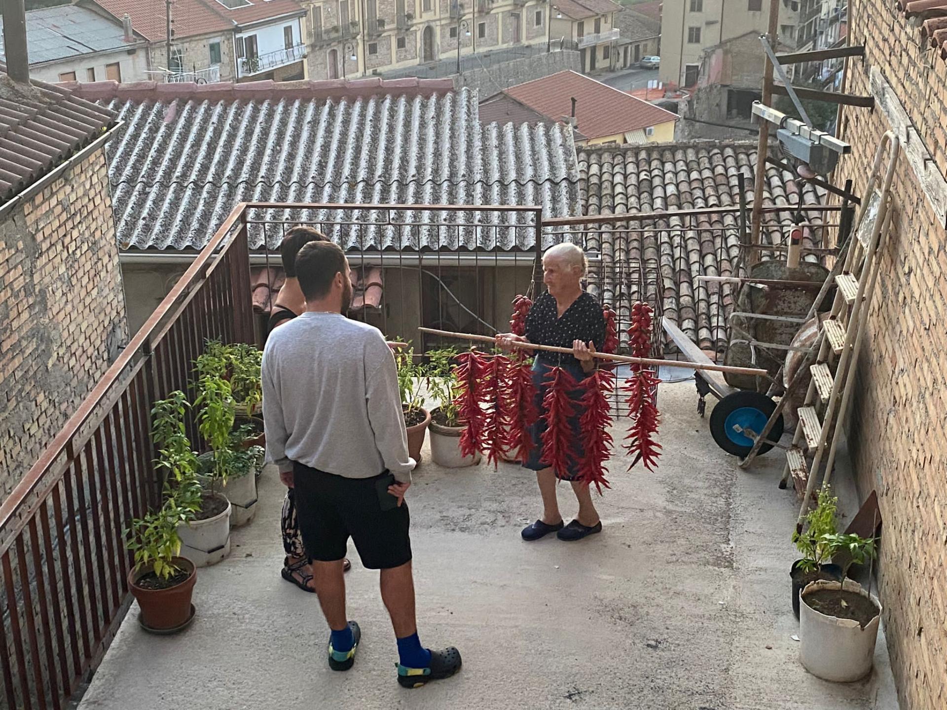 To explain the project, introduce resident artists and engage with the community, we organise “frontal” informative press conferences, work-in-progress, and final presentations. Yet citizens do not participate as audience only. Local human and professional resources have been indispensable to develop the projects of our residents. These communities have little experience of contemporary art’s politics of presentation and spectatorship, and this leads towards a spontaneous and participative horizontal approach. In 2021: Emii Alrai learnt from local artisans a slipware technique of Byzantine origins; Itamar Gov’s engaged with a whole network of citrons producers for his installation. In 2022: Alice Pedroletti worked in synergy with Soriano's National Library to re-stage archival photos depicting boys with the participation of young ladies from the town; Gianmarco Porru learnt the traditional recipe of “mustaccioli”, once world-famous and now ever less known; Armando Perna managed to get access to the ancient cloister of a local monastery closed to the public. Citizens have hence been pivotal to our programme, from hospitality to the production and local word-of-mouth promotion of our work. Their involvement is a crucial validation of our activities and sets the ground to demand attention at regional and national levels.