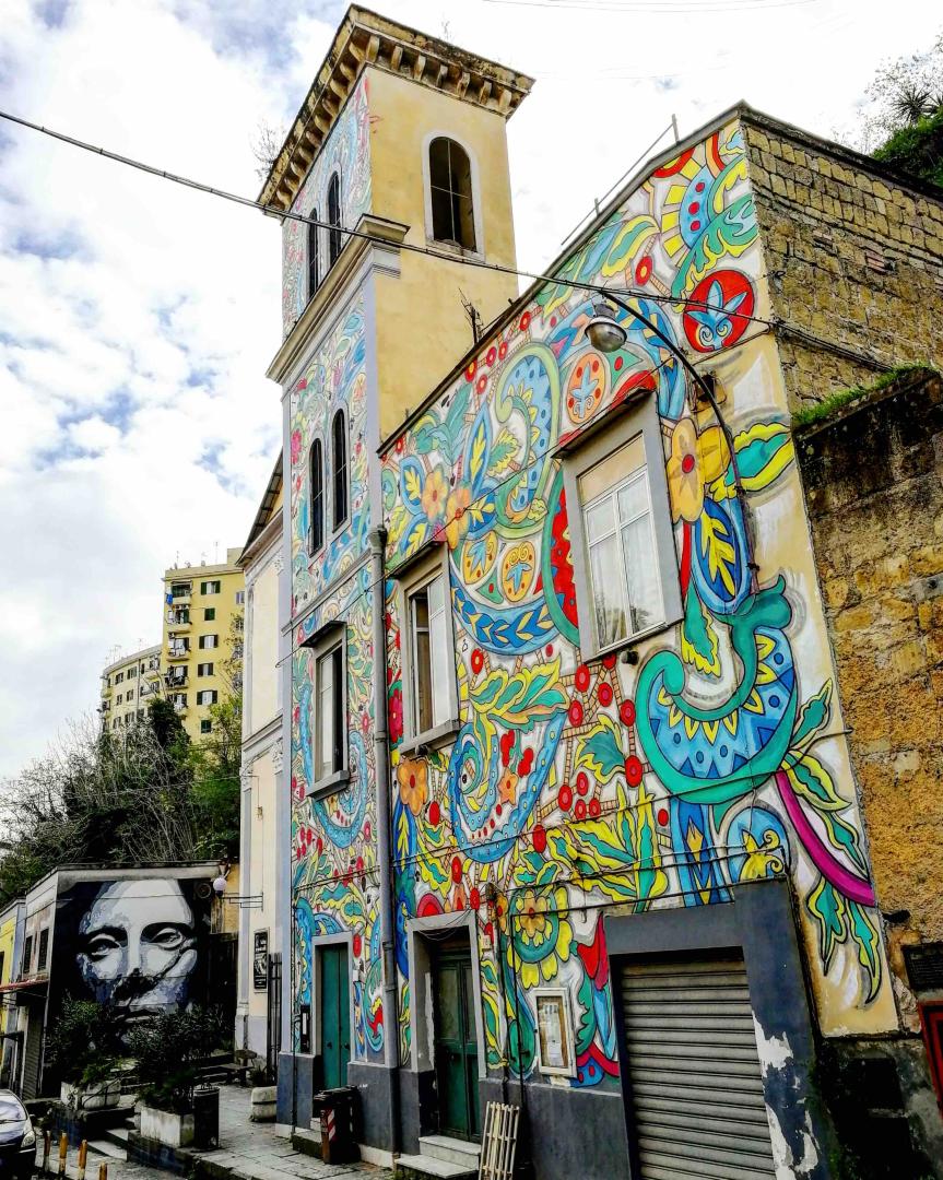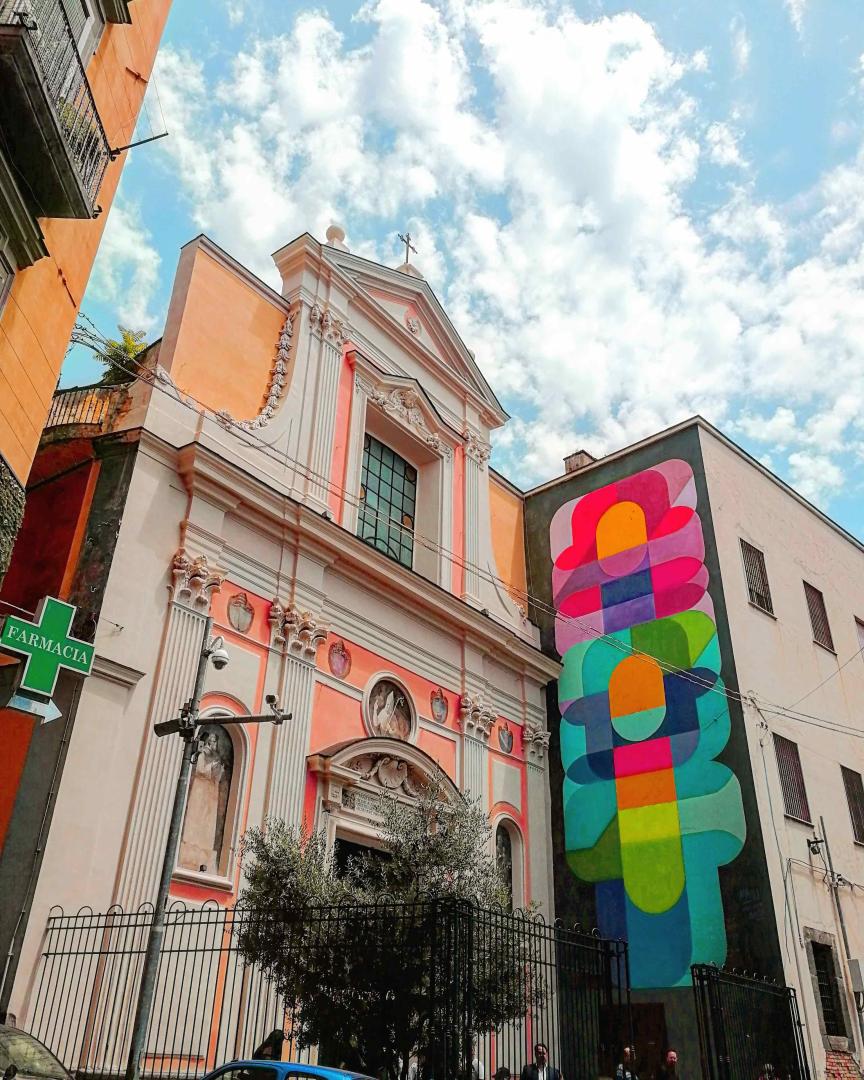 Mono Gonzalez, a Chilean artist and set designer, "turned-on" the bell tower and the rectory of the Fontanelle cemetery with his colourful artworks. The artist Jorit guided the works of a group of youth from the district, teaching them the mural art technique. Francisco Bosoletti, from Argentina, is the author of the huge artwork "Resis-Ti amo", which occupies the entire facade of the basilica of Santa Maria della Sanità. “Perseveranza '' by Matias Noguera Matu, on the external wall of the basilica San Severo Fuori le Mura, represents an homage to the music produced inside by the orchestra Sanitansamble.