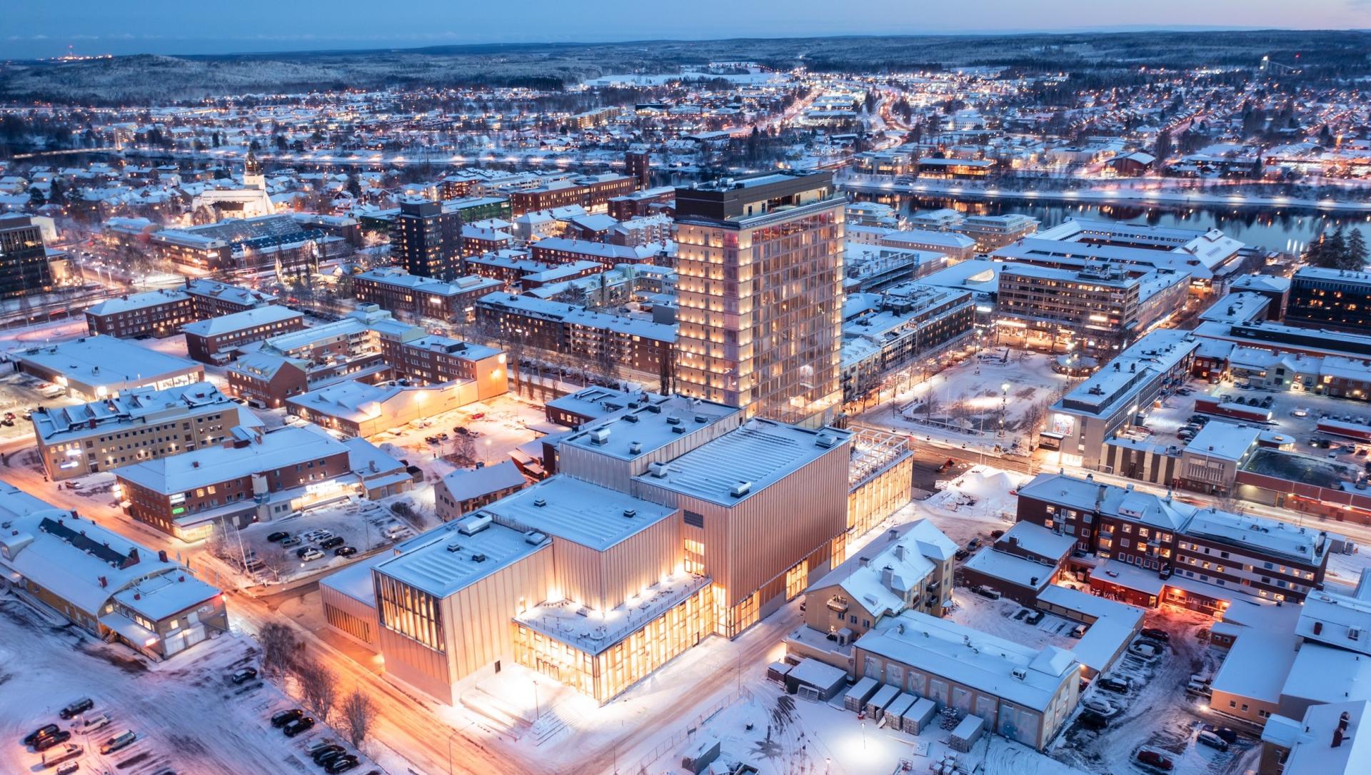 SARA is Skellefteå’s new meeting place. Skellefteå's legacy of building in wood is combined with the latest engineering, which has made the project an award-winning model in sustainable design, construction and energy solutions. It signifies the cultural heritage, with one foot rooted in the northern tradition while the other has taken a step into the future. One aim when building SARA was to reconnect to Skellefteå's long tradition of building in wood. SARA has 20 storeys and houses six stages, two art galleries, a library and a foyer with an open and inviting floor plan. There is a hotel and three restaurants in the building. SARA is home to the regional theatre Västerbottensteatern, Skellefteå Art Gallery, City Library and Museum Anna Nordlander. The building has different bodies, which in shape and size are tailored to the different activities. It is designed with the flexibility principle called 70/130 in mind, meaning that various businesses within the building share surfaces, logistical solutions and resources. SARA thrones in Skellefteå city centre on a location that had been in decline for many years up to the construction of SARA. There had been earlier plans to use the premises for a larger monument or meeting place, but instead it was used as the city’s central bus station. The decision to build SARA here was a well thought out plan in order to transform the place into a more inclusive, thriving place, but also to showcase local knowledge in wood-building, local culture and handicraft and to be a monument of a growing environmentally and socially sustainable place. SARA:s vision is to be a house for everyone and a role model in sustainable design and construction where all forms of local and international culture get to live side by side. Skellefteå municipality is part of the local NEB network in Västerbotten, an active part of NEB Sweden and has through this network the possibility to share results about sustainable wood-building, in Sweden and Europe.