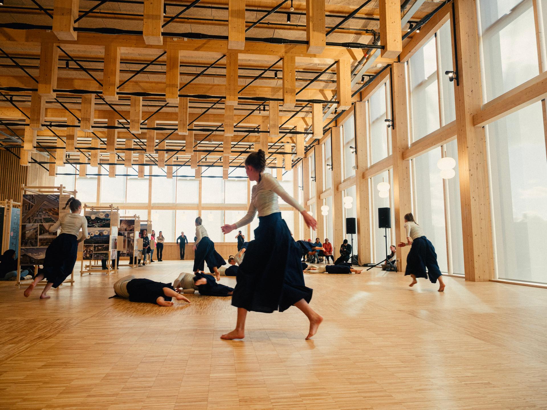 As mentioned, SARA has received many awards for its architecture, design and aesthetics. The fact that SARA is built in wood gives a natural connection to the landscape, traditions and knowledge of the region. It also connects to the cultural history of the region as SARA is named after Sara Lidman, one of Skellefteå region’s many famous authors. She was the inspiration to create a cultural centre characterised by courage and a desire to embrace innovation. SARA:s vision is to be a place for everyone, a place creating a sense of belonging, inclusion and a welcoming atmosphere. One key word is availability. The point of the structure is that people walking past will be able to notice new exhibits being staged or new scenography being created through the many windows covering the sides of the building. By connecting local traditions of storytelling, cultural expressions and design SARA has managed to become the natural meeting place for people in Skellefteå. SARA is a courageous cultural centre for all the senses, that enriches, affect and includes everyone. SARA also has a central role for a growing and proud region with world-leading sustainable community change. Being a natural meeting place requires a central location as well as good accessibility and generous opening hours. That of course influenced the choice of location in the city centre. Through its design, SARA is characterized by change, flexibility, energy and flow. SARA functions both as an attractive tourist destination and as the living room for the people in Skellefteå - a place of discovery and diversity. In addition, the building broadens Skellefteå's field of vision to "act local - think global." SARA links rural and urban Skellefteå, being a landmark for the whole municipal area where about 50% of the population live in the city and 50% outside, in the surrounding rural areas. SARA aims to include art experiences for everyone, including children, as the two sculptures outside the entrance shows.