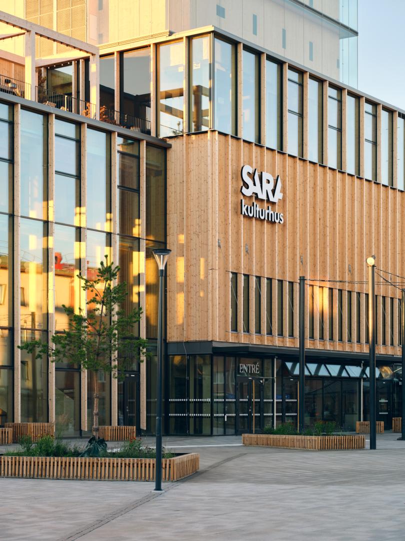 SARA Kulturhus is a house of culture for the people that live in Skellefteå and in the region, all those that will come to live here in the future and for all who need a room to meet and discuss innovative ideas for the benefit and the development of the region. SARA connects historical local traditions of wood-building and cultural expressions to the modern society and is a symbol for inclusion, environmental and social sustainability.