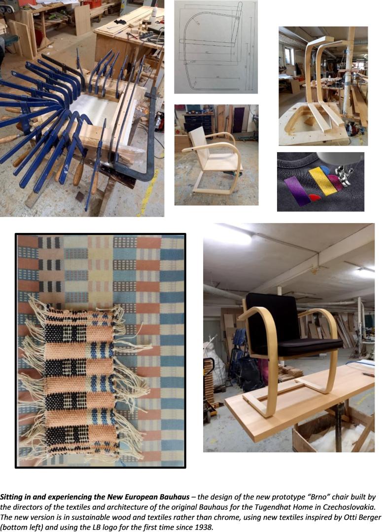 2. Has completed textile innovations and a Brno chair in its design - to improve sound, heat, tactile, colour, smell, and pollution insulation and the experience of sitting comfortably in the lessons. 3 textile innovations to improve heat and sound insultation by 20%, renewable energy efficiency by 10% and Uw values of the large windows by 10% which like the Brno Tugendhat House link us to nature have been implemented