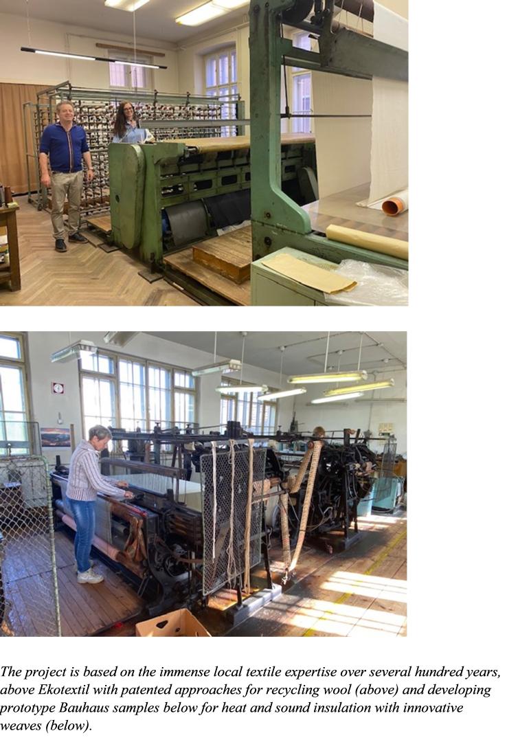 Sustainability is at the heart of the project due to the synergy of the three objectives 1. A leading museum which convenes people and provides hybrid digital and place based learning 2. A huge and beautiful workshop to make new bauhaus textiles to improve the thermal, light, touch and sound quality of the museum, and 3. Transformation of a historic and neglected place into a sustainable community center for local and European visitors.