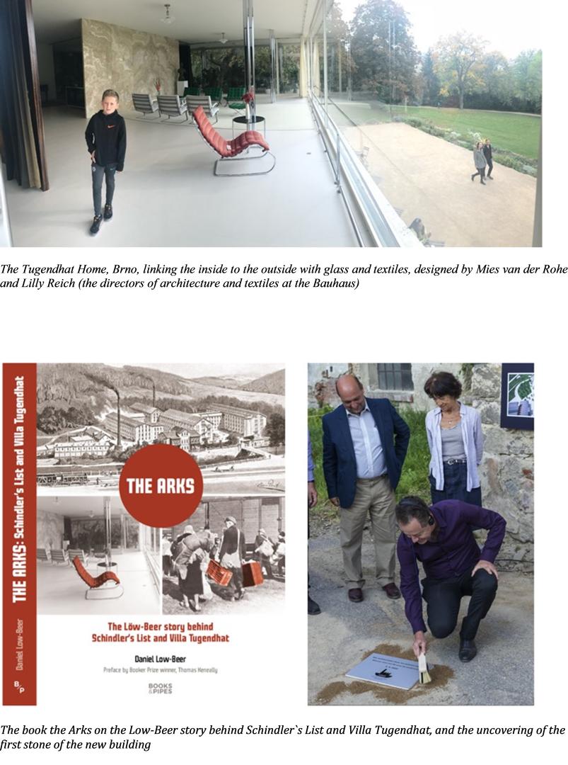 The Tugendhat and Low-Beer family also commissioned the Tugendhat Villa built by the bauhaus director of architecture (Mies van der Rohe) and textiles (Lilly Reich) in Brno in 1929. The project builds on this aesthetic, weaving textiles into the design and using the art of survivors in its learning activities, to