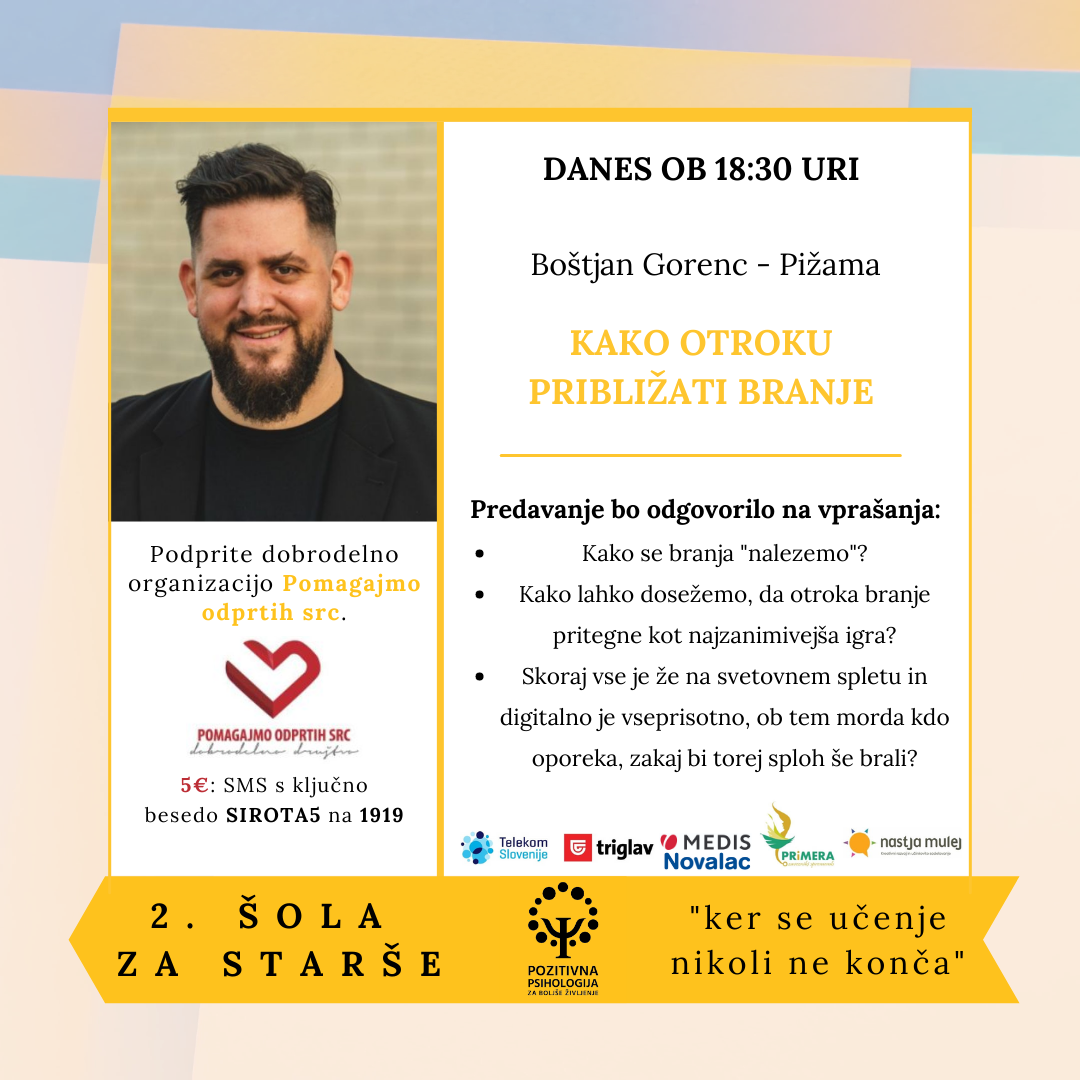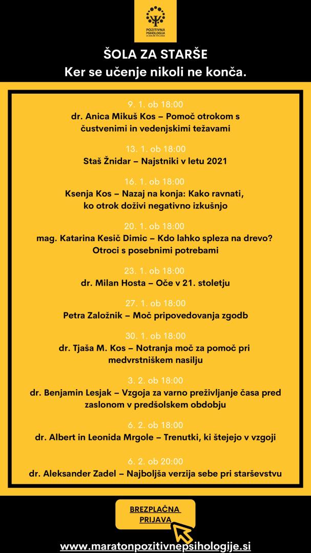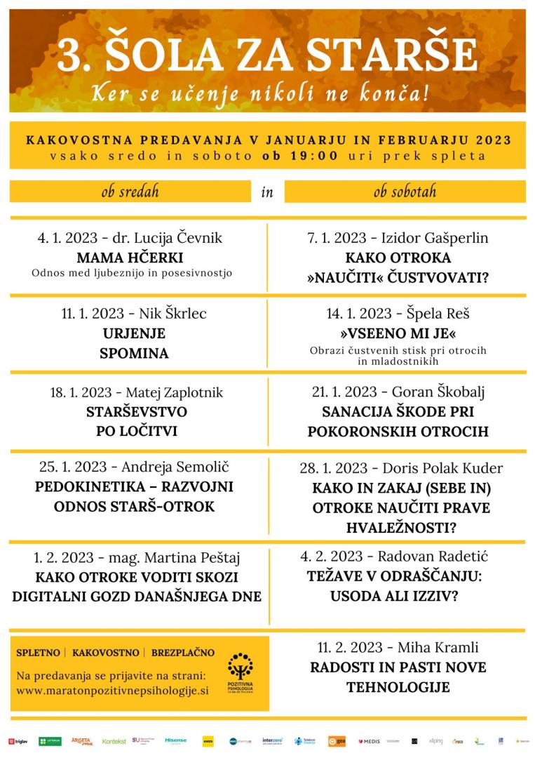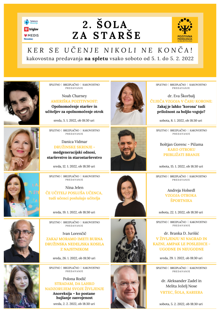 Positive Psychology is a well know Slovenian community-building initiative that offers lectures about various strengths of positive psychology and growth mindset, started in Jan 2013. During lockdowns we moved online and organised 120+ lectures, free of charge, collecting donations for charities, supported by socially responsible organisations. Most popular is School for Parents with 11 lectures addressing current issues (interpreted into Slov. sign language), in 2023 organised for the 3rd time.