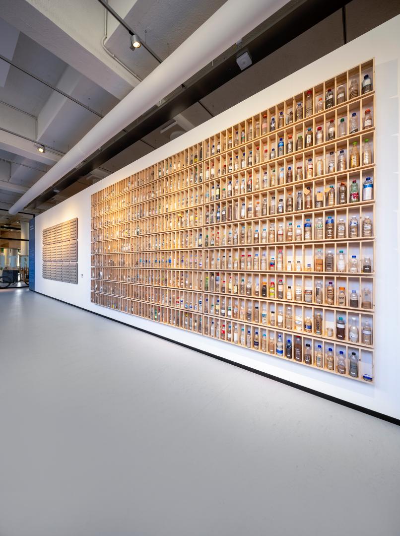 Meanwhile, people’s environment is not just the place where they live. It can be the place where they go on holiday, where they studied or met their spouse – it can be the entire globe. This is what the presentation of the sand samples and the resulting glass specimens accomplishes to show. Hundreds of different bottles and containers with a variety of sands give a dazzling impression of different places, cultures and people. The transformation into glass adds unity in diversity by the standard cups Atelier NL uses to smelt the sand. Here, the wide range of colours displayed in gradients invites reflection on both nature and the human race with its beautiful variety.