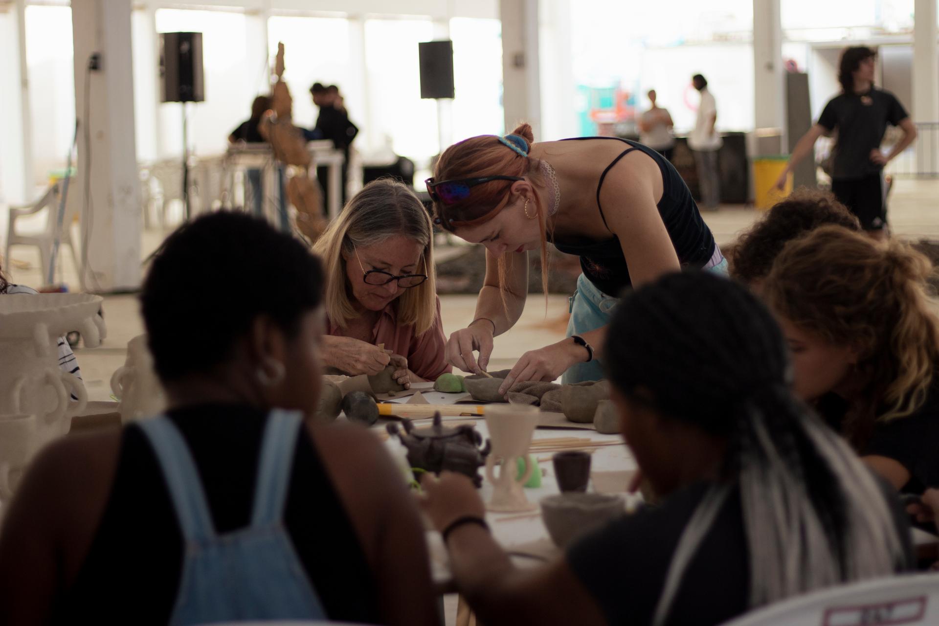 On the one hand, the driving force behind La cuarta piel is formed by an interdisciplinary group of architects, artists, ceramists and farmers who bring their concerns and learning into a common project. These crossovers are reflected in the design of the spaces, the production of the installations and the activation of the workshops and parties, which propose a unique amalgam of experiences and learning.