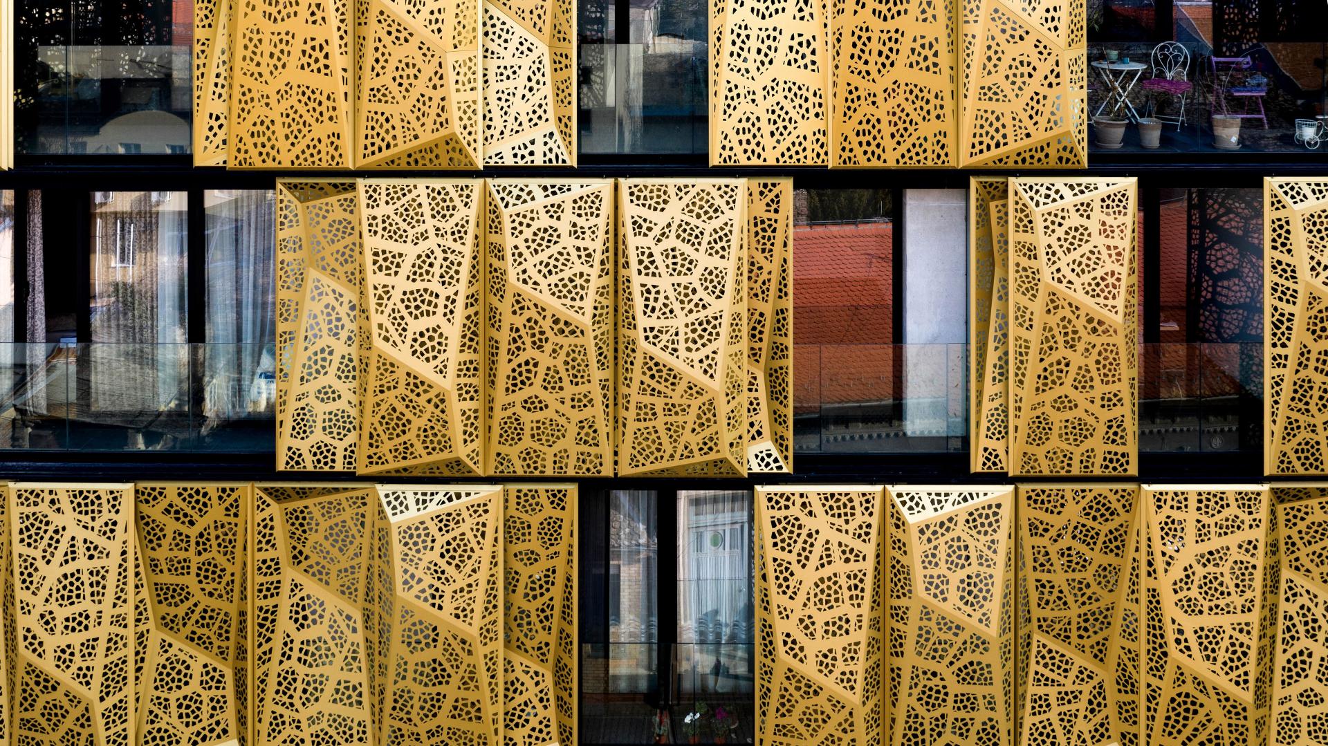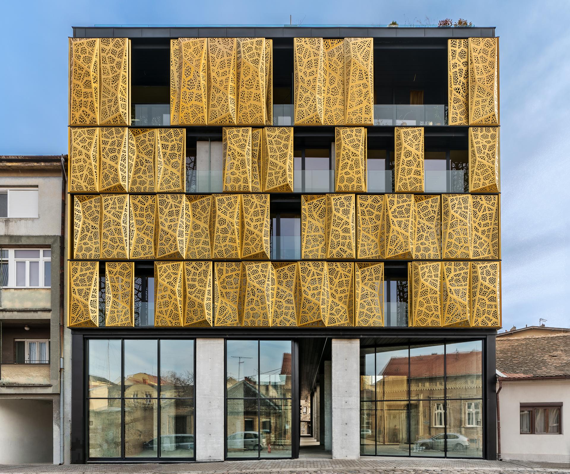 Throughout the production stages, our focus was on engaging domestic manufacturers wherever possible. Tehnomarket company handled the extrusion of frames, which were later sent to Alumil for anodizing. Subsequently, our architectural studio meticulously designed all panel details and elements. We concentrated on facade assembly, expertly combining frames with the 3D fill of the panels. Probanat Construction executed the entire assembly, incorporating Geze Rollan System wheels for movable facade panels. For non-perforated panels, SW Line company managed the rolling process. The production process's unique value lies in creating a flawless facade system replicable in diverse conditions. Additionally, the assembly process is remarkably swift, saving both time and money, while minimizing waste generation.