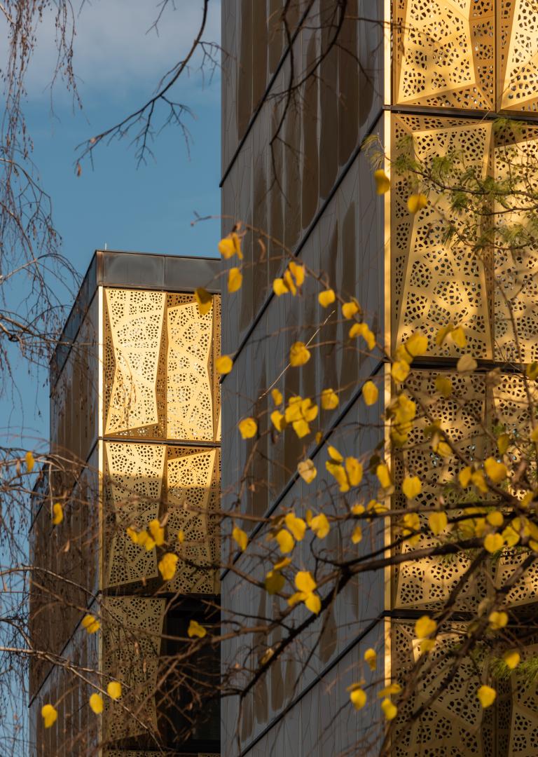 Material selection - Project promotes the usage of materials such as exposed concrete and metal cladding that are easily produced and installed. Exposed concrete doesn’t require additional layering so there’s no need for manufacturing what brings environmental and financial benefits, also both metal panels and exposed concrete can be fully recyclable. Aside from the materials themselves, special attention was given to minimizing waste during the production of facade panels. Consequently, all waste from perforation was transformed into secondary raw materials.