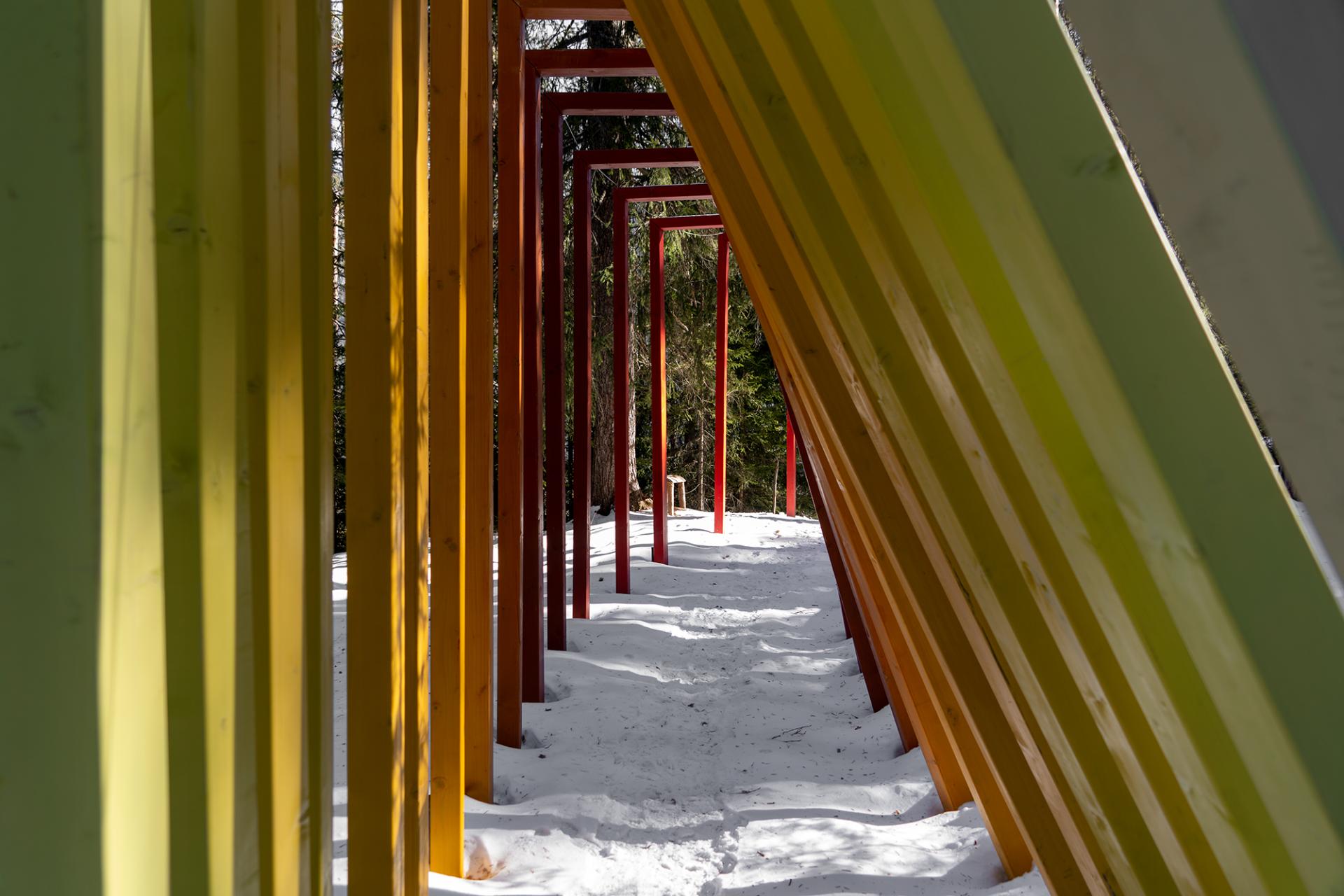 Val dl'Ert (in English 'Art Valley') is a public art park created by redeveloping an abandoned forested and haymaking area in the territory of San Martin de Tor in the Ladin Dolomites. From 2018 to today, the art park has grown to an extension of 25 hectares, with a network of paths stretching for over 3 km along which 23 artworks are exhibited in dialogue with the nature and history of the village and Val Badia. The park is freely open every day, at all times, in every season.