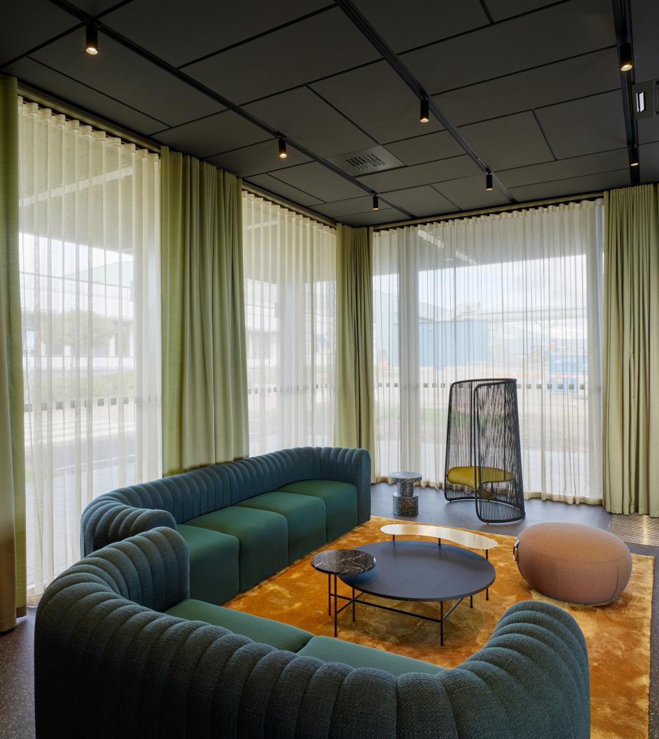 The goal was to create a welcoming entrance point for the vast SNRC area. The design is rooted in typical industrial architecture featuring large spans and raw, visible construction. In contrast to this, modern details such as frameless glass partitions add a contemporary touch. The building is a blend of an industrial structure and a high-tech lounge/exhibition hall. The steel used in the construction pays homage to the company's history and emphasizes Stena Recycling's focus on circularity.