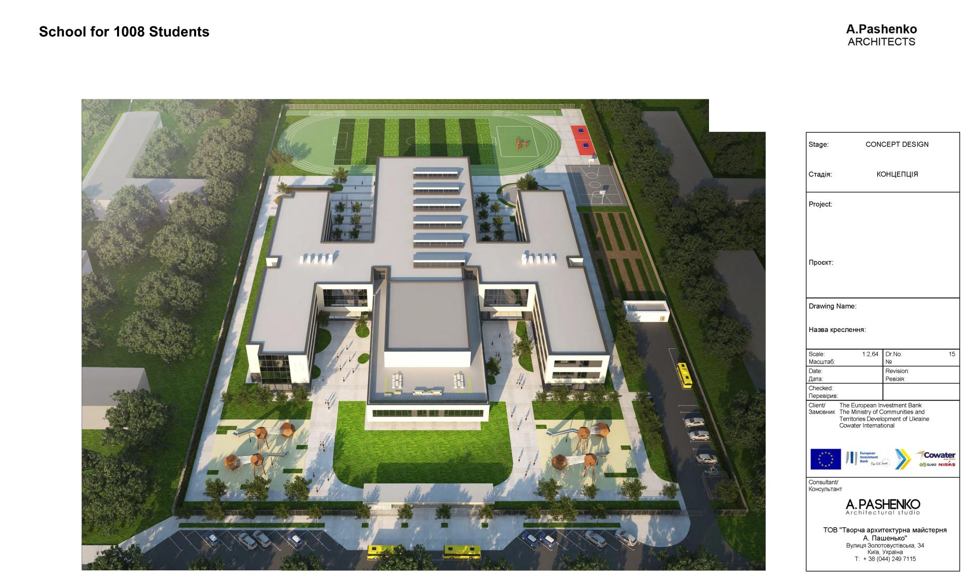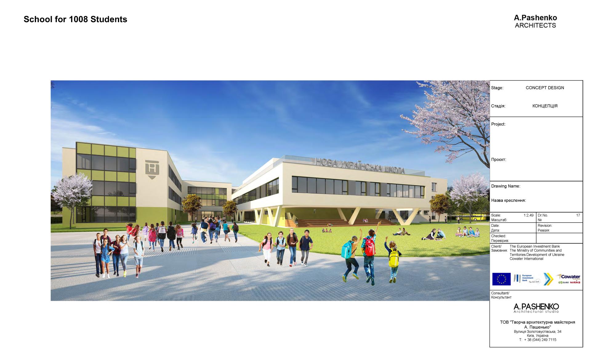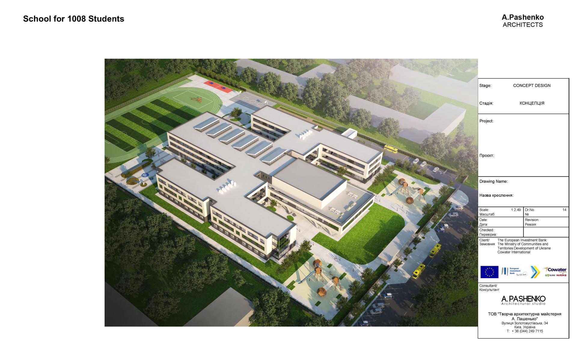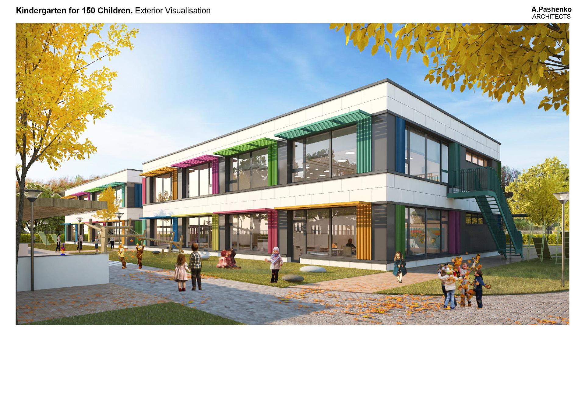 The Ukrainian Architectural Studio A.PASHENKO have developed seven typical projects of social infrastructure for the rebuilding of Ukraine. The project was implemented within the framework of the Ukraine Recovery Program (URP) — a framework loan from the European Investment Bank (EIB). The projects include three schools, three kindergartens and an administrative services centre, and can be used by local municipalities for free, saving considerably time and money in the reconstruction efforts.