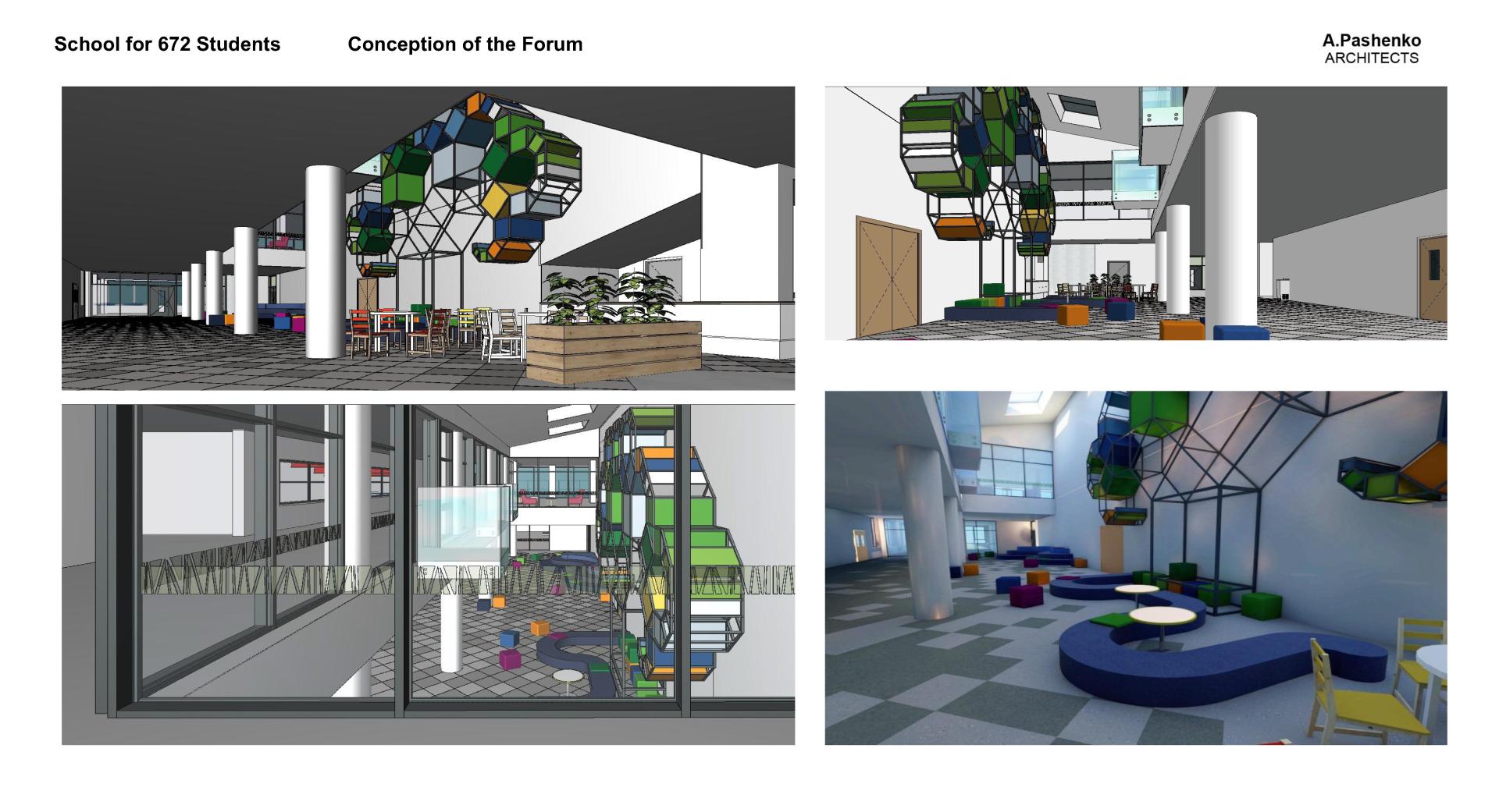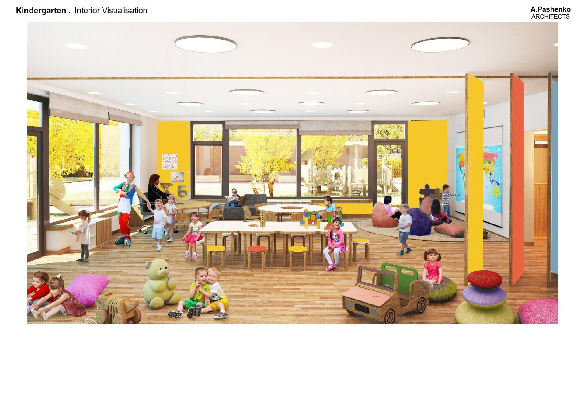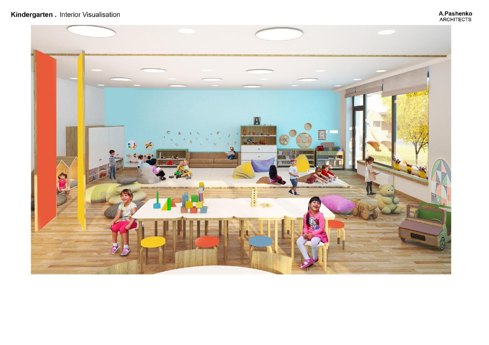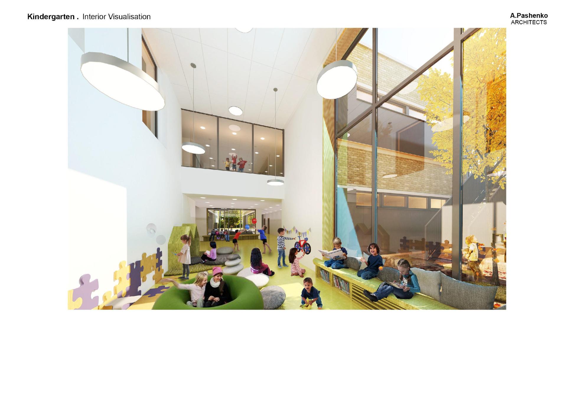 The designs of the internal layouts were driven not only by the optimal functional requirements of each building but also to contribute to the physical and mental well-being of the users. Thus, the corridors in the kindergartens and schools were designed to be not only circulation arteries but places for informal exchange and learning, with furnished islands for various types of physical and mental activities, and windows which allow constant visual connection to the outside landscapes. The corridors and halls are also treated as galleries for educational and children art exhibitions, creating a positive and enriching experience for students and staff. There are external and internal forums for the school communities to come together indoors as well as outdoors, encouraging mutual sharing and care. The projects planning and design were driven by the research of the best practices in European architecture and learning from the most successful case studies, while at the same time meeting the local requirements, and therefore can be exemplary in this context.